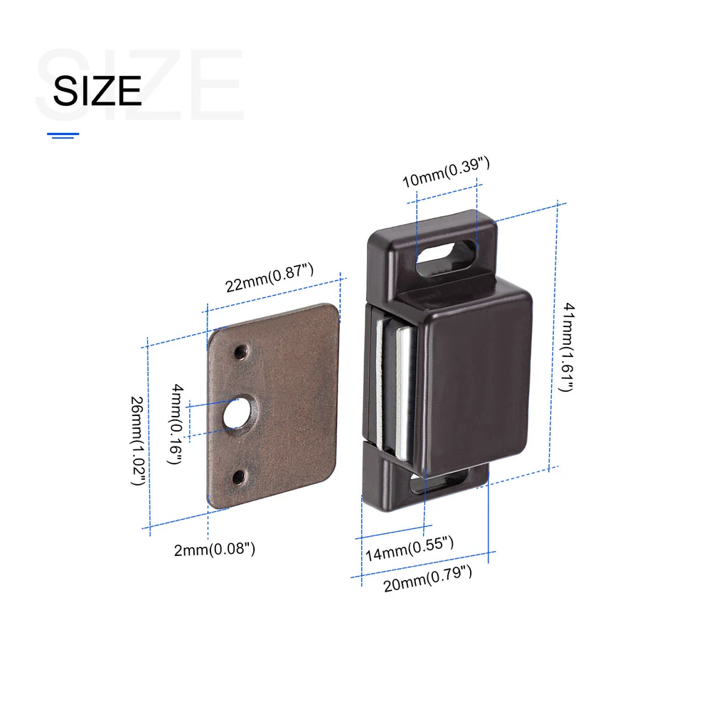 Document APPLY TO -Suitable for home furniture, glass doors, wardrobe doors, dressing tables, cupboards, wardrobes, closets, etc,Specification:Cabinet Door Catch Main Body:Total Size: 41mm(L)x14mm(W)x20mm(H)/1.61"x0.55"x0.79"Screw Mounting Size: 10mm(L)x3.5mm(W)/0.39"x0.14"Mounting Hole Middle Distance: 32mm/1.26"Strike Plate:Total Size: 26mm(L)x22mm(W)x2mm(T)/1.02"x0.87"x0.08"Screw Mounting Size: 4mm/0.16"QUANTITY INCLUDED - 12pcs x 41mm/1.61" Cabinet Door CatchADVANTAGE - Our magnetic door catch design is small, drawer closet magnet latch can close the door more efficiently. The magnetic force makes it difficult for your pet to open the door so that add extra safe to your home. Magnetic Latches Catch (41mm/1.61") 12Pcs, ABS Plastic Cabinet Magnet Latch APPLY TO -Suitable for home furniture, glass doors, wardrobe doors, dressing tables, cupboards, wardrobes, closets, etc, Specification: Cabinet Door Catch Main Body: Total Size: 41mm(L)x14mm(W)x20mm(H)/1.61"x0.55"x0.79" Screw Mounting Size: 10mm(L)x3.5mm(W)/0.39"x0.14" Mounting Hole Middle Distance: 32mm/1.26" Strike Plate: Total Size: 26mm(L)x22mm(W)x2mm(T)/1.02"x0.87"x0.08" Screw Mounting Size: 4mm/0.16" QUANTITY INCLUDED - 12pcs x 41mm/1.61" Cabinet Door Catch ADVANTAGE - Our magnetic door catch design is small, drawer closet magnet latch can close the door more efficiently. The magnetic force makes it difficult for your pet to open the door so that add extra safe to your home. Hot Item Payment 1.We accept eBay payment . 2.Payment must be received within 7 business days of auction closing. Shipping 1.We ship to your eBay or Paypal address. Please make sure your eBay and Paypal address is correct before you pay. 2.Items will be shipped within 1-3 business day when we received payment. 3.Delivery time depends on destination and other factors. Description Policy Magnetic Latches Catch (41mm/1.61") 12Pcs, ABS Plastic Cabinet Magnet Latch APPLY TO -Suitable for home furniture, glass doors, wardrobe doors, dressing tables, cupboards, wardrobes, closets, etc, Specification: Cabinet Door Catch Main Body: Total Size: 41mm(L)x14mm(W)x20mm(H)/1.61"x0.55"x0.79" Screw Mounting Size: 10mm(L)x3.5mm(W)/0.39"x0.14" Mounting Hole Middle Distance: 32mm/1.26" Strike Plate: Total Size: 26mm(L)x22mm(W)x2mm(T)/1.02"x0.87"x0.08" Screw Mounting Size: 4mm/0.16" QUANTITY INCLUDED - 12pcs x 41mm/1.61" Cabinet Door Catch ADVANTAGE - Our magnetic door catch design is small, drawer closet magnet latch can close the door more efficiently. The magnetic force makes it difficult for your pet to open the door so that add extra safe to your home. Hot Item Payment 1.We accept eBay payment . 2.Payment must be received within 7 business days of auction closing. Shipping 1.We ship to your eBay or Paypal address. Please make sure your eBay and Paypal address is correct before you pay. 2.Items will be shipped within 1-3 business day when we received payment. 3.Delivery time depends on destination and other factors.
