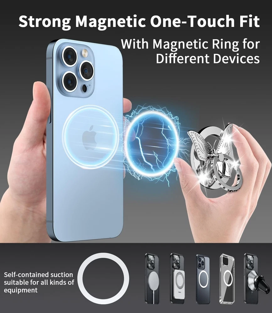 -Brand New - Never Used - Questions: Feel free to ask any Questions - BOX: Never Opened - DESCRIPTION: Ultra Strong Magnetism:Phone Grip comes with a super strong magnetic ring to hold iPhone 15/14/13/12 series and magnetic cases securely, you don't have to worry about your phone falling off. Magnetic ring fits as soon as it is attached. And it leaves no sticky residue. Even with a metal ring installed, wireless charging will not be affected Stylish Decoration:Phone holder's the perfect combination of fashion and function. The high quality silver glitter material on the phone holder shines like a diamond, perfect for the sparkling you! Whether you are travelling or using it daily, it will add colour to your attire and photos 180 sliding & 360 Rotation:phone finger holder has 360° rotation and 180°F sliding folding function, you can take photos,read and watch videos in different viewing angles. The mobile phone ring light allows you to touch more positions on the screen with one-handed operation. Suitable for multiple scenes Compatible with All Phones:The finger ring grip can be directly attached to iPhone 15, 15 Plus, 15 Pro, 15 Pro Max, iPhone 14, 14 Pro, 14 Pro Max, iPhone 13, 13 Pro, 13 Pro Max, 13 Mini, iPhone 12, 12 Pro, 12 Max, 12 Mini. Pro, 12 Pro Max, 12 Mini, or magnetic phone cases. The magnetic ring clip is also compatible with non-magnetic phones and standard cases with a thin metal ring on the back (included in the package) - OFFERS: Reasonable offers are considered, LOWBALLERS, Best price and Lowest askers will be ignored - all sales final/no refunds/ no exchanges/ no returns - Disclaimer: I do not own the brand's trademarks, logos, pictures, or products posted. I do not intend to infringe on copyright. I find such content available on the internet. Contents are considered fair use. -BBD Magnetic Phone Grip Butterfly Phone Ring Holder with Metal Ring Stylish Twinkle Tick Tock 360°Rotating iPhone Ring Grip Compatible iPhone 15/14/13/12/Plus/Pro/Pro Max,Android,MagSafe Accessories