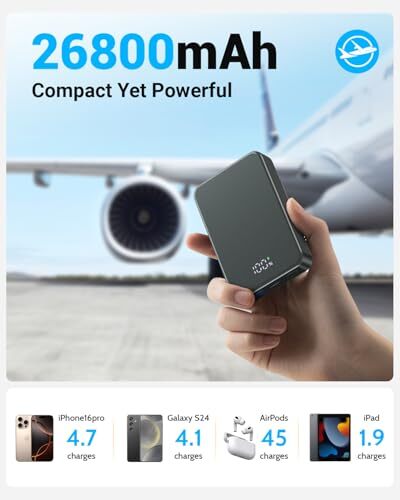Return Policy Fast Delivery Trusted seller Magnetic Power Bank 26800mAh for Magsafe Portable Charger, Aluminum alloy Large Capacity 20W USB-C in&Out Wireless Fast Charging Battery Pack for iPhone16 Plus Pro Max/15/14/13/12 Series, Glacier Gray Product Description 【Large Capacity and powerful】POAQCIF 26800mAh magnetic portable charger is only 4*2.6*1.1 inch and weighs about 328g, Designed for people who are always on the go.Equipped with lithium-ion with higher energy density and better safety features, which makes the power bank more compact but with higher capacity.Upgrade your mobile charging experience! 【Strong Magnetic Wireless Charger】Magnetic battery pack with the newest magnetic technology (stronger magnetic and nano adsorption), can directly hold the back of your iPhone 16/15/14/13/12 Series, We recommend charging with mag-safe phone case or without cases to get enough suction (Using a non-magnetic phone case will cause the phone to not adsorb properly). 【Aluminum alloy cg and safe】This power bank supports 15W Max wireless and 20W wired fast charging. Its aluminum alloy cg is not only stylish but also has excellent heat dissipation performance. So it never gets hot. Say adios to power troubles! 【PD 20W Wired Charging Share for a friend】Not just for iPhone! This magnetic battery pack has a Type-C and a USB-A port for charging multiple devices. It's the perfect travel buddy. Take your family and hit the road with it! 【What you get】26800mAh Magnetic Power Bank x 1, USB-C Charging Cable x 1, Instruction Manual x 1. We provide Professional after-sales service. Every product is certified safe and passing factory tests. if you have any questions, feel free to contact us via and reply within 24 hours. Shipping Returns Payment Shipping Shipping is FREE to all addresses other than APO/PO boxes in the lower 48 states. All our stock ships from US-based warehouses. Shipped via USPS or UPS (depending on location and package weight) Unless stated otherwise, all orders will ship within 24-72 hours of your payment being processed. Check our feedback to see the great reviews of FAST shipping we offer. Returns Seller does not accept returns Payment We currently accept payment via eBay managed payments only. Once payment is cleared, we will dispatch your shipment within 1-3 business days. Please refer to the "Shipping" tab for more information regarding shipping speed to your destination.