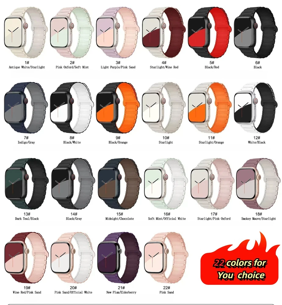 Magnetic Silicone Strap Band for Apple Watch Ultra 10 9 8 7 SE 42/44/45/46/49mm Features: * 100% Brand new and high quality. * COMFORTABLE MATERIAL The strap is made of soft silicone material covered with multiple suction magnets in one molding process, which can be worn safely and securely on the wrist. * POWERFUL NEODYMIUM MAGNETS keep your Apple Watch safe and secure on your wrist even while playing sports or in wet conditions. Works with all Apple Watch Models. * FAST AND EASY The soft, skin-friendly silicone material is suitable for all-day wear and is very easy to clean, so simply rinse or wipe it off and it will look like new. * Multiple colors available: We offer 36 different colors for you to choose from. Matching different color straps will give your watch a new look and sophistication. Compatible With: > For Apple Watch Ultra / Ultra 2 > For Apple Watch Series 10 / Series 9 / Series 8 / Series 7 / Series 6 / Series 5 / Series 4 / Series 3 / Series 2 / Series 1 / > For Apple Watch Nike > For Apple Watch Hermes > For Apple Watch SE Package Contents: 1x Magnetic Loop Band ONLY !!! ( PS: The Apple Watch is Not Included )