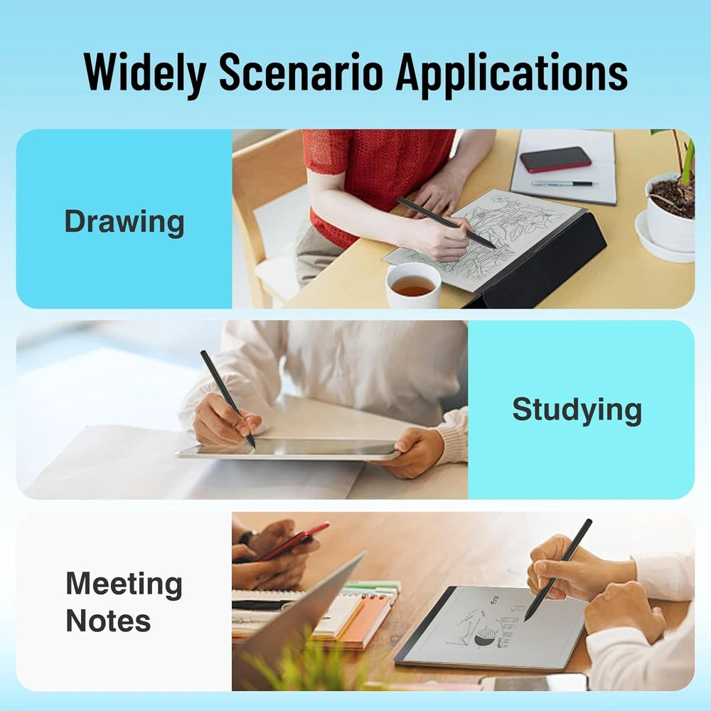 Magnetic Stylus Pen for Remarkable 2 Pen with Eraser, Digital Replacement Pen for Remarkable 2 Stylus Alternative Marker Plus, 4096 Pressure Sensitivity, Palm Rejection, Tilt Support with 5 Pen Tips LuxeFusion Product Description Features 【Stylus Pen with Magnetic Design】Our stylus for remarkable pen has a magnetic attraction function, which allows you to attach it to your electronic devices when you are not using them without worrying about losing them. Our EMR stylus pen has wide compatibility and is compatible with most electronic devices, like reMarkable 2/1/Kindle/BOOX/Samsung/Lenovo/HP/Galaxy models. The EMR stylus is not compatible with Apple devices. 【Emr Pen For Remarkable 2 Pen with Exact Eraser Function】The replacement pen end of the digital pen equipped with an eraser, you can erase lines easily and letters simply flipping the pen upside down. 【4096 Pressure Sensitivity】User by using remarkable 2 pen replacement for remarkable 2 to write and sketch with extreme precision and control, you can perform exact/extensive erasure in your drawing, studying, meeting notes, delivering an excellent writing and graphical output. 【Palm Rejedction & Tilt Support】Our EMR pen for remarkable 2 stylus alternative allows you to rest your hand on the screen of your laptop, you can sketch and write from all-directions, which does not obstruct your vision, enhances writing precision in writing and drawing. 【Ergonomic Design & EMR technology】 Our stylus for remarkable 2 marker plus using EMR technology, it no need to charge and no setup or pairing is required to start writing. The EMR pen's body surface is light and comfortable and provides a very natural writing experience with perfect ergonomics. Product Details Product Dimensions: 6.1 x 0.35 x 0.35 inches Item Weight: 0.459 ounces Item model number: RMD-001 Manufacturer: RigorMade Country of Origin: China Brand: abasuto Material: Plastic Item Weight: 13 Grams Compatible Devices: Tablet Item dimensions L x W x H: 6.1 x 0.35 x 0.35 inches Are Batteries Included: No Batteries Required?: No Free Shipping All orders ship free and fast to your doorstep. Easy Returns Satisfaction guaranteed. 30-day returns, no questions asked. 24/7 Support Contact us anytime; we’re here to help, day or night. Brought to you by LuxeFusion – Quality you can trust.