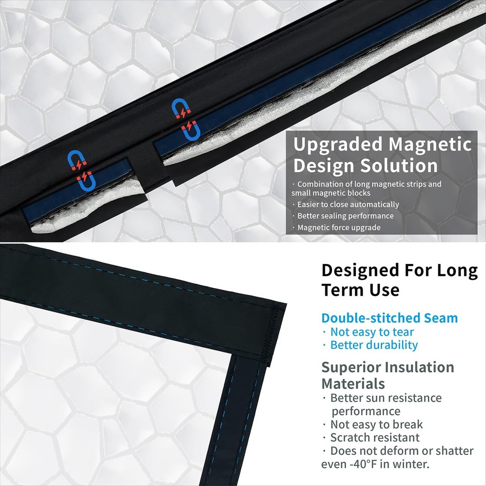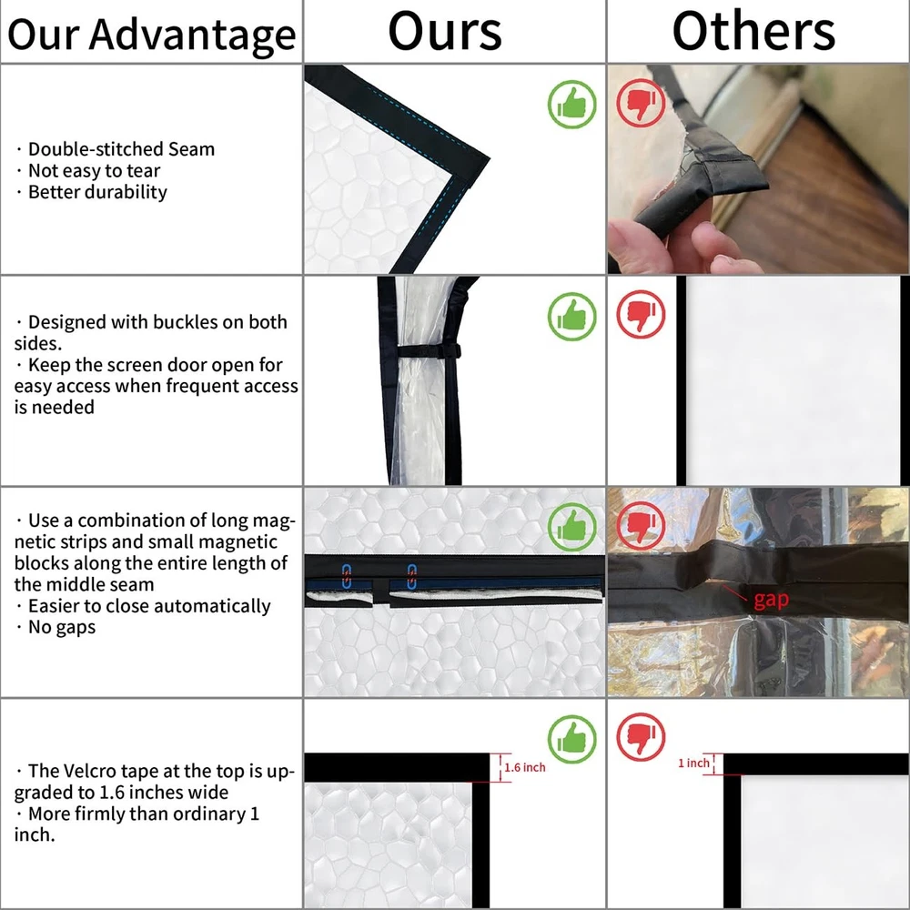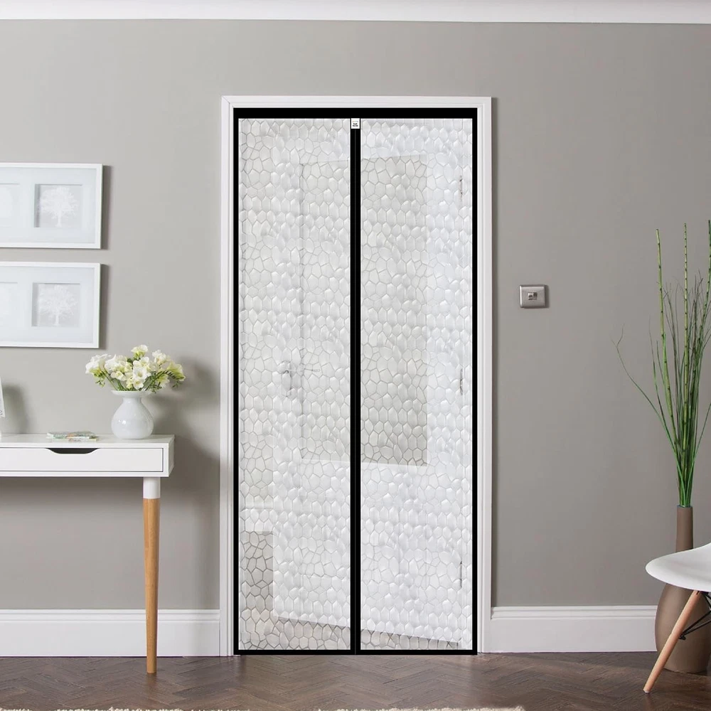 Superior Insulation Materials: Our clear insulated door curtain is made from 0.15mm thick PEVA eco-friendly insulating material, BPA-free or any harmful substances, completely safe for your family and pets. The weather transparent thermal door curtain have 60% light transmittance, allowing natural light into rooms. With excellent heat and cold resistance, they will not deform or shatter even after prolonged sun exposure in summer or -40°F in winter. Save Energy and Money: Plastic door curtain help maintain indoor temperature and reduce air conditioner waste, lowering energy costs. In winter they prevent heat loss and cold drafts from entering, while in summer they prevent cooled air from escaping and hot air from entering rooms - letting you enjoy a warm winter or cool summer. Our door blanket are the most affordable way to help regulate temperatures in your home. Hands-free Access - Our insulated screen door uses a combination of long magnetic strips and small magnetic blocks along the entire length of the middle seam, making it easier to close automatically with no gaps. Hands full? No problem, just walk through, it will close behind you. No need to constantly open and close the door for kids and pets, they can come and go as they please. When frequent access is needed, buckles on both sides can keep the insulated inside door open. Easy to Assemble and Disassemble - Everything you need is included. Simply follow the instructions to attach the temporary door to your door frame with Velcro tape. Thumbtacks can provide extra reinforcement if needed. No tools needed. Quick Installation. Our magnet door curtain feature Velcro tape along the entire frame for easy removal—cleaning. Choose the Correct Size - The thermal door cover measure 34 x 81.6 inches, fitting doors up to 32 x 80 inches. Before ordering, carefully measure your door size (door only, exclude the frame) to ensure proper fit. Wide Versatility - The door curtains for doorways can partition different areas in your home, containing cooled/heated air where needed without escaping to unused spaces, reduce air conditioner load and energy costs. They can also be used in kitchens to contain cooking odors. These door covers are suitable for front back doors, indoor or outdoor entries, patio, decks, rv door, porches, bedroom, doorway, balconies, inside door, french door, glass doors, garage, interior, and even sliding doors.
