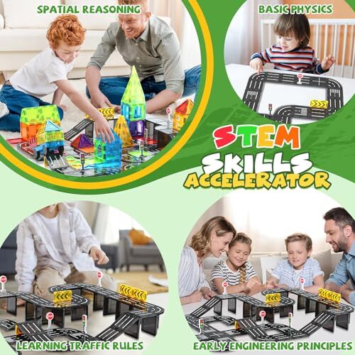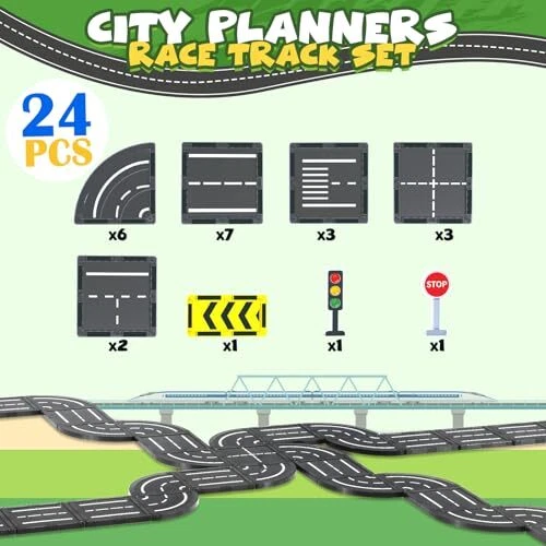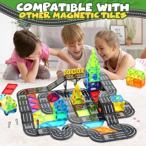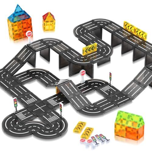 Magnetic Tiles, Construction Magnetic Road Tiles 24 Pcs Road Magnetic Tiles