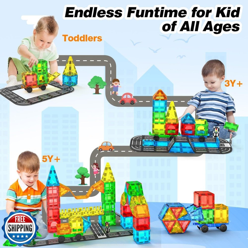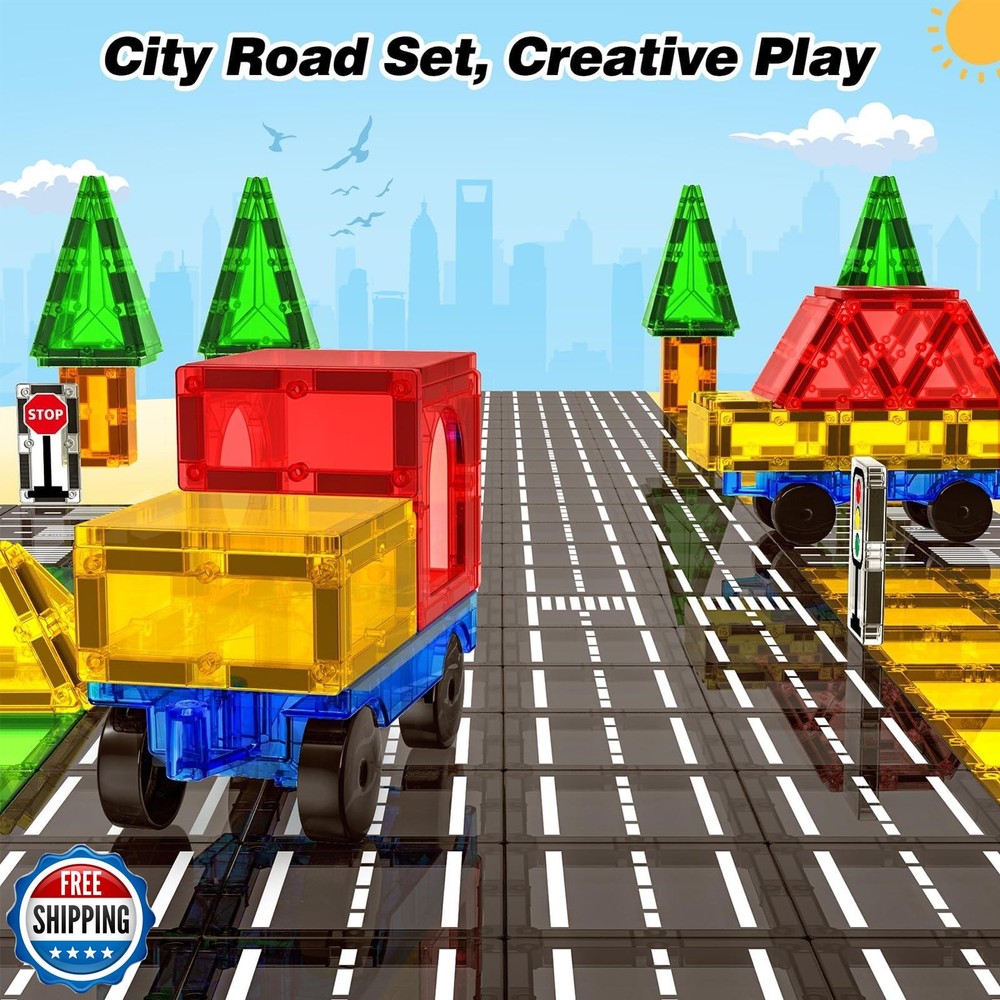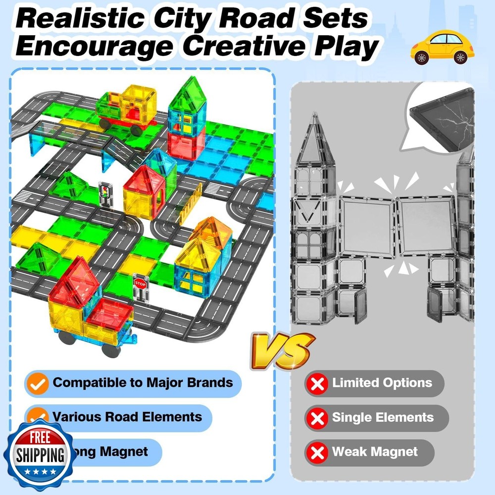 Magnetic Tiles Road Sets with Car, Magnetic Building Blocks Toys for 3+ Year Old Boys Girls, Montessori Magnet Kids Toys, Construction Toys for Ages 3 4 5 6 7 8 Christmas Birthday Gifts for Toddlers Features 【Innovative City Road Sets】Our magnetic tiles toy for kids ages 3-5 4-8 consists of 40 pieces, including 27 traditional magnetic tiles, 10 road magnetic tiles, 2 traffic lights, and a car. Children can place toy cars, small animals and character models on the magnetic tile road to build a mini city and road network. This creative play style can enhance children's imagination and creativity, offering them a more immersive and enjoyable gaming experience. 【Safe and Durable】The building toys are made of safe and durable food-grade ABS plastic with a smooth surface and rounded edges to protect little hands from scratches, allowing children to play carefree. This magnetic blocks kit for kids aged 3 4 5 6 7 8 uses a sturdy cross-fixed design to ensure durability and years of uninterrupted play fun. 【Widely Compatible】This construction toys are compatible with most other brands's on the market. Kids have the freedom to mix and match different sets, incorporating our road sets with their existing toy cars, animals, and characters to create a unique play experience that fosters their imagination. Suitable for 3+ years old boys girls. 【STEM Preschool Toys】Our magnetic tiles for kids ages 4-8 allows children to learn while playing, develop their spatial cognition and hand-eye coordination, and the concept of roads. These Montessori toys are both fun and educational, suitable for a variety of learning environments, and are an indispensable choice for both classroom and family activities. 【Ideal Children's Gift】Feoxialy magnetic building toys are suitable for children of all ages and can be used for family interaction, school activities and classroom entertainment. As a gift choice for birthdays, Easter, New Year or Christmas, this magnetic toy is an ideal gift for boys aged 3 4 5 6 7 8. Choose our innovative magnetic road tile set to bring more fun to your children. Shipping Free & Fast Shipping: We offer free shipping to most of the USA with a normal delivery time of 3-7 days. However, due to the current situation, additional delivery time (up to 3 weeks) may be required for some items. Alternative Carriers: We may use alternative carriers (e.g., USPS, FedEx, UPS) to ensure your package arrives safely and on time. Due to the use of multiple carriers, we are unable to provide a tracking number automatically. Handling Time: Orders are processed and shipped within 1-2 business days of receiving cleared payment. Shipping Restrictions: Shipping to Alaska, Hawaii, Puerto Rico, Guam, and other US territories may incur shipping charges or delivery restrictions. Please contact us before ordering, or your order can be refunded/cancelled. State Restrictions: Certain items may not be shipped to California due to state regulations. Contact for Tracking Updates: If you require tracking updates or have any concerns about the delivery of your order, please feel free to contact us, and we will be happy to assist you. Return Policy 30-Day Hassle-Free Returns: If you are not completely satisfied with your purchase, you can return the item for free within 30 days of receiving it for a full refund or exchange. Easy Return Process: Contact us, and we will provide you with a prepaid return shipping label and detailed instructions. No Restocking Fee: There are no restocking fees for returns. However, the buyer is responsible for return shipping costs if the return is not due to a seller"s error. Refund Processing: Refunds will be processed within 1 business day of receiving the returned item in its original condition. Feedback Your feedback is extremely important to us. We strive to provide the best products and customer service possible. If you are satisfied with your purchase, please take a moment to leave us a positive review. If you have any concerns or issues with your order, please contact us before leaving negative feedback. We are committed to resolving any problems and ensuring your satisfaction. Contact Us If you have any questions or concerns, please feel free to reach out to our customer support team. You can contact us through the eBay messaging system. We are available Monday to Friday, 9:00 am to 5:00 pm EST, and we will do our best to respond to your inquiry within 24 hours. Thank you for supporting our small family business!