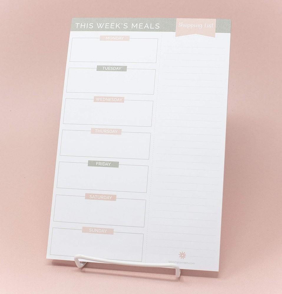 bloom daily planners Weekly Meal Planning Pad - Magnetic 6 inches X 9 Product Details Manufacturer: bloom daily planners Brand: bloom daily planners Item Weight: 8.4 ounces Product Dimensions: 9 x 6 x 0.3 inches Item model number: PS Is Discontinued By Manufacturer: No Cover Material: Paper Material Type: Paper Size: 6 inches X 9 inches Sheet Size: 6 X 9 Manufacturer Part Number: PS Brand: bloom daily planners Cover Material: Paper Format: Day to Day Calendar Calendar Type: Weekly Target Audience: Women, Adult, Families, Moms Sheet Size: 6 X 9 Material: Paper Item Weight: 0.24 Kilograms Pages: 60 Pages Binding: Unknown Binding AESTHETIC ORGANIZATION: Whether you’re planning family dinners, meal prepping for the week ahead, trying to reduce food waste, or simply looking to eat healthier, this magnetic weekly meal planner for fridge makes it easy to stay on track. TWO STRONG MAGNETS: Our fridge notepad features TWO large magnets (1” x 4”) so your planner pad stays put. Hang it on the refrigerator to keep your family organized, then tear off each sheet as you go! MEAL PLANNER & GROCERY LIST COMBO: To help you gather everything you need for your weekly menu, there’s a perforated shopping list on the side of each page. Jot down your ingredients and bring it with you to make every shopping trip more efficient. PREMIUM, THICK PAPER: Our 6” x 9” magnetic note pad for fridge is made of high-quality, 100gsm bleed-resistant bright white paper. The durable 1.5mm greyboard backing makes it easy to write while hanging on your refrigerator or flat on your countertop. 60 SHEETS FOR A YEAR OF PLANNING: Each meal pad includes 60 tear off sheets, which is more than a full year's worth of weekly meal planning! This menu board & grocery list is a great gift item for moms, women, parents, adults, and more.