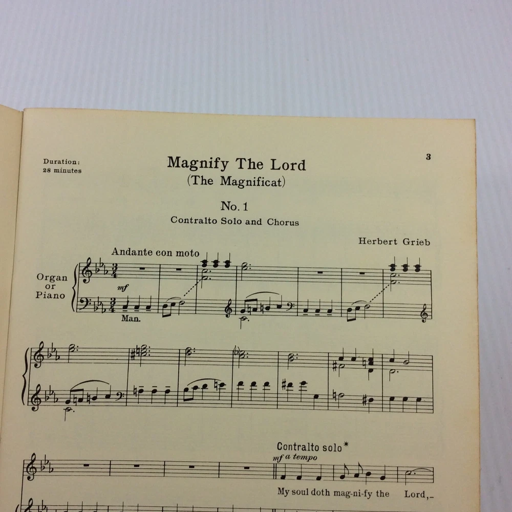 1. This beautiful SATB choral songbook brings Herbert Grieb’s stunning Magnificat arrangement to life. The vintage 1961 edition is in great condition and arrived quickly. Perfect for choirs or collectors, it’s a rare find with rich harmonies. The seller ships fast and offers discounts on multiple items—excellent service! Highly recommend for sacred music lovers.
