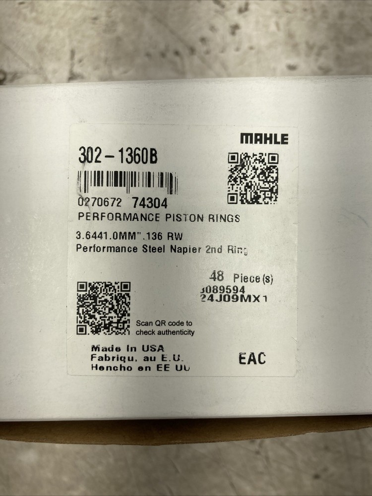 Mahle Performance Piston Rings Set 302-1360B-48 Pieces (New Old Stock) Location: E9