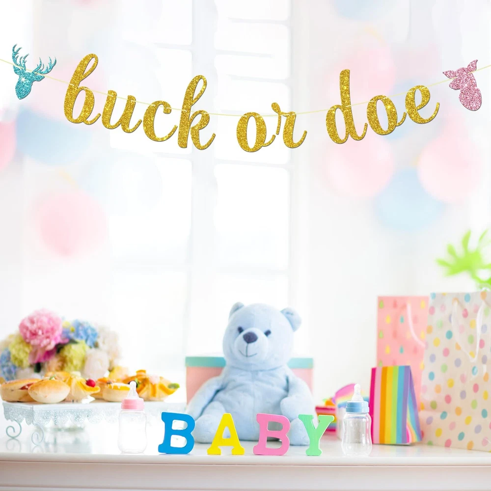 Maicaiffe Buck or Doe Banner - Gender Reveal Party Bunting Decor - Deer Doe Pregnancy Announcement Party Decorations, Gold Glitter Buck or Doe Banner 【Material】👶Banner decorations are made of sparkling cardboard, non-toxic and odorless, and can be used with confidence. 【Size】👶 About 6.2 feet. Due to the manual measurement of the banner, there may be some deviation in size, and the size shown in the picture is for reference only. 【Wild Applications】👶It can be used in various scenarios, such as hanging in the living room and on the door. If used outdoors, it can also be hung on a tree, which is very worthwhile! 【Interesting】👶When you receive the product, you need to take a few minutes to string the letters together. It's easy, you can do it! To showcase the beautiful side of the party, it's worth it! 【Notes】👶Thank you so much for purchase. If you have any questions, please contact us. Shipping from the USA All of our products are shipped from the USA, ensuring quick delivery to your destination. Payment We offer the following payment methods: PayPal, credit card, bank transfer, and eBay's secure payment system. Free Shipping & Free Returns Shipping within the USA is FREE. Additionally, any return is absolutely free for you. Risk-Free Purchase You have the option to return an item within 30 days without any justification. We cover the return shipping costs! Fast Shipping We ship immediately upon receipt of payment. Generally, the package is delivered within 2-3 days in the USA. If it takes longer, we will contact you. Quality and Costs Made in Europe, USA, China No customs fees or additional charges Total satisfaction guarantee Invoice with declared VAT available upon request in .pdf format Feedback Your feedback is very important to us. After you pay for your purchase, you will automatically receive positive feedback from us.