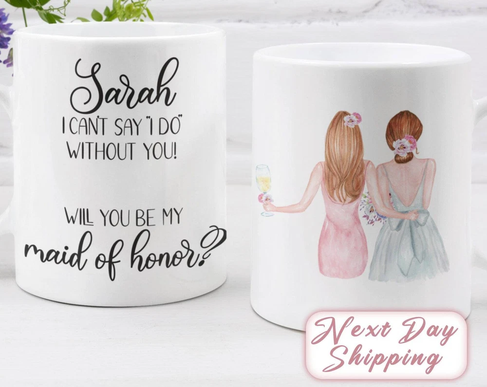 Maid Of Honor Proposal Mug Maid Of Honor Proposal Gift Gift For Maid Of Honor Product Details.. This high quality 11oz. ceramic white mug has a premium hard coat that provides crisp and vibrant color reproduction sure to last for years. Perfect for all hot & cold beverages. The highest quality printing possible is used. It will never fade no matter how many times you wash it. Material: 100% Ceramic. Print both sides. Dishwasher and Microwave Safe. High Gloss + Premium White Finish. Printed in the U.S.A. Personalized & Custom. We support personalized and custom mug to add custom, when placing an order, you can add notes to the "order note" in shipping address section. Also you can contact us directly via message. Shipping Info. Ready to ship in 1 to 2 business days, All products are made-to-order and proudly printed in the United States. Shipped by USPS and DHL, You will receive your order in 5-7 days. Replace & Refund. All products are defective during shipping broken, chipped will be replaced free of charge. You are not satisfied with the product, we will refund 100% money to you. If any other issues arise, please do not hesitate to message, we would be more than happy to assist you.