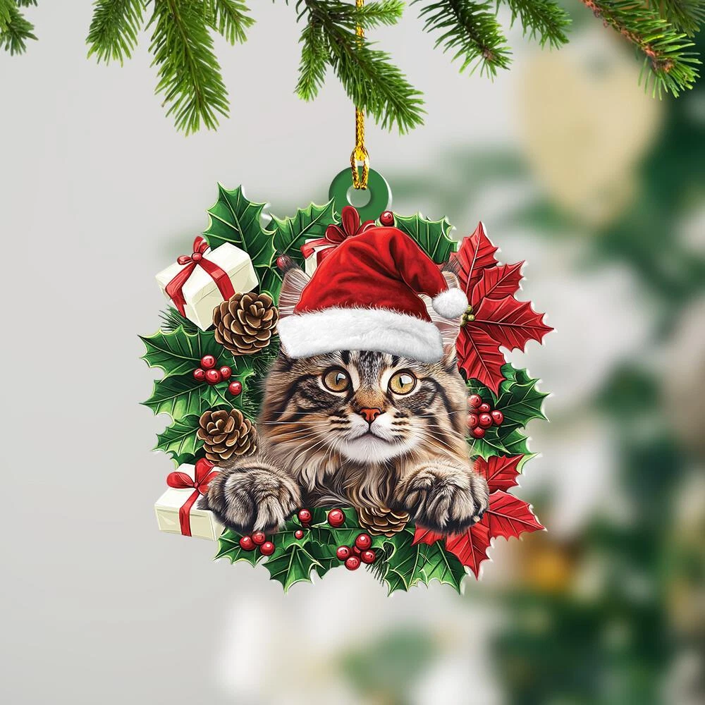 Maine Coon Cat Christmas Wreath Ornament Gift Maine Coon Cat Car Ornament Decor