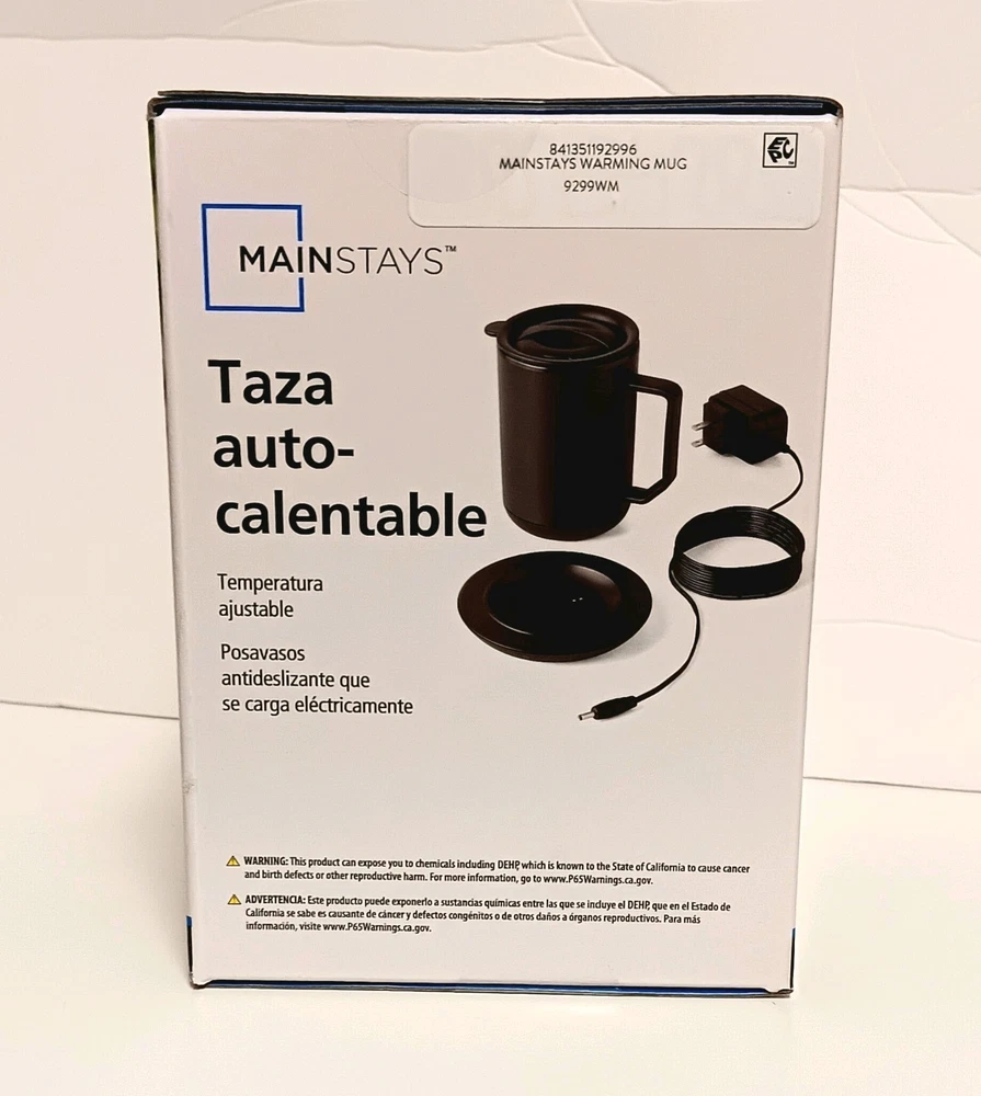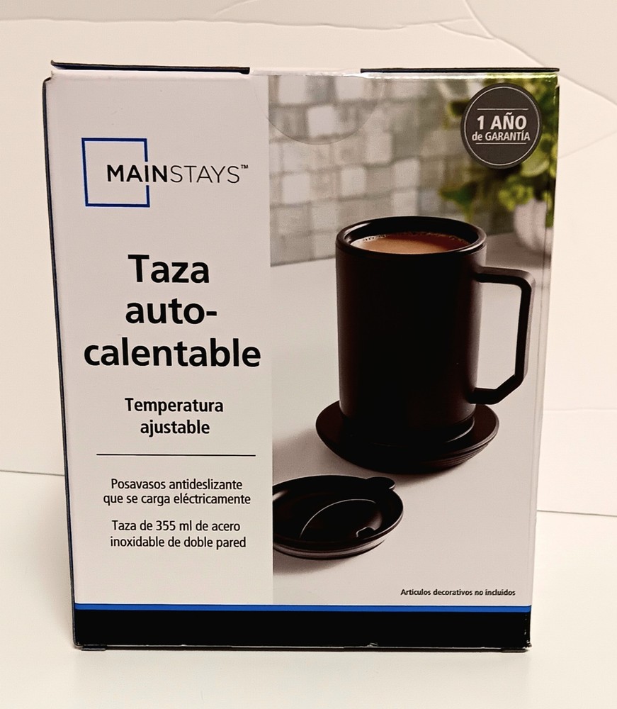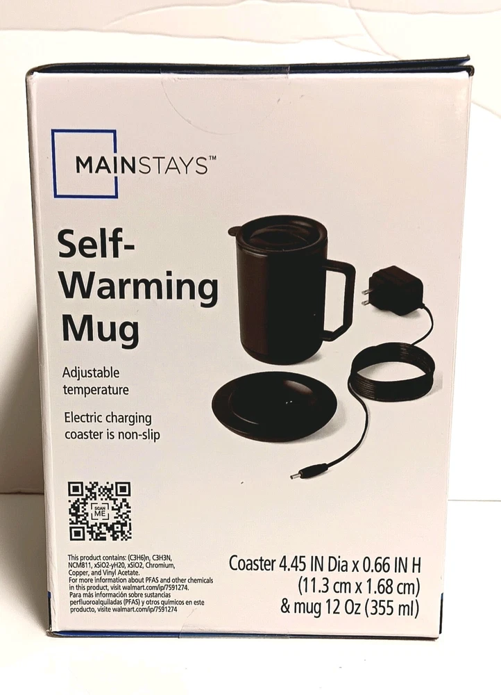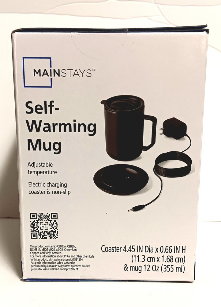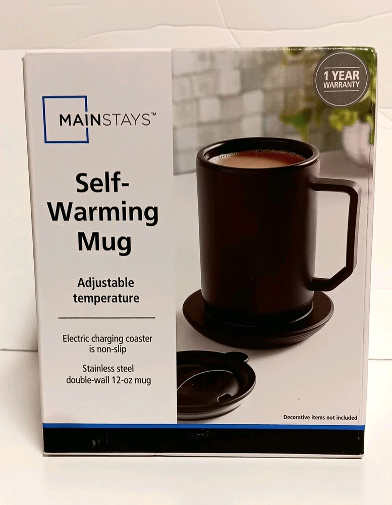 NEW Mainstays Warming Coffee Mug 12 Oz Stainless Steel Black Mug Warmer and Lid. Factory-sealed. See photos.