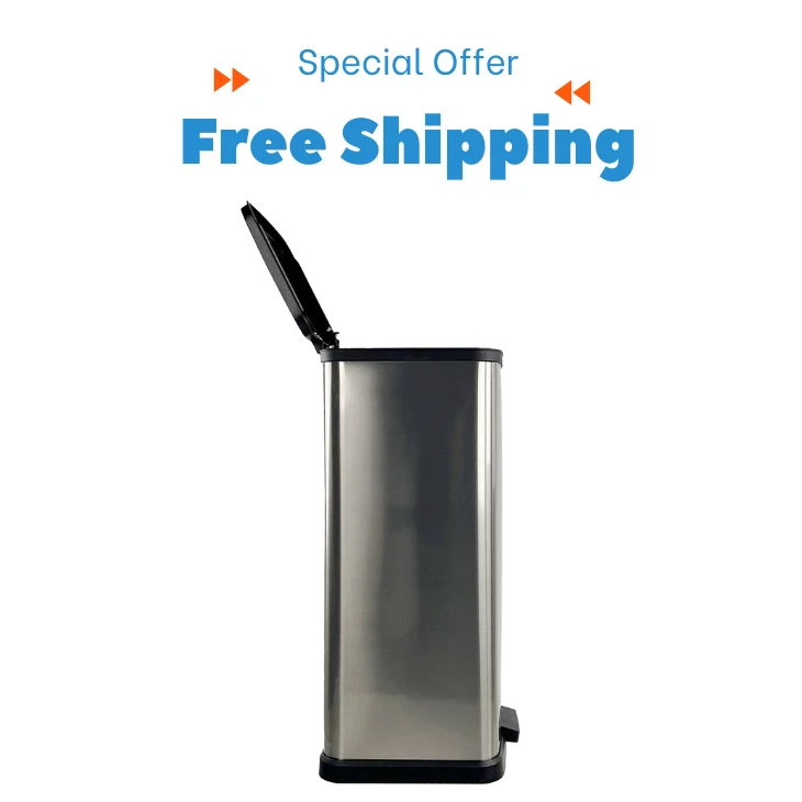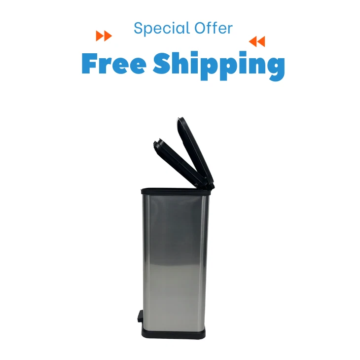 The Mainstays 13-gallon trash can is a perfect fit for any space. Featuring a sleek, modern design, it offers the stylish look of stainless steel while being made from durable plastic. Its spacious capacity makes waste disposal easy while adding a touch of elegance to your environment. The flawless stainless steel-look exterior makes it an excellent choice for offices, dorm rooms, or home use. Built from sturdy plastic, it resists scratches and dents, ensuring long-lasting durability. The convenient front step pedal allows for hands-free, effortless lid opening. Mainstays 13.2 Gallon Plastic Step Trash Can, Silver Inner bag ring – Keeps the trash bag securely in place without the need for an inner bin Durable plastic construction – Strong and resistant to damage Stainless steel-look exterior – Enjoy the premium look without the risk of scratches or dents Hands-free operation – Step pedal for easy, touch-free lid opening Compatible with 13-gallon trash bags – Perfect for everyday use Square top and base design – Sleek and modern aesthetic Dimensions – 13.54" L x 14.44" W x 26.24" H