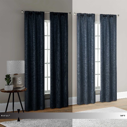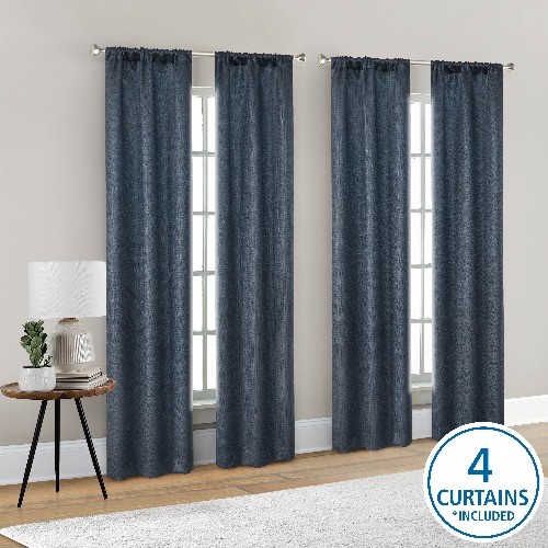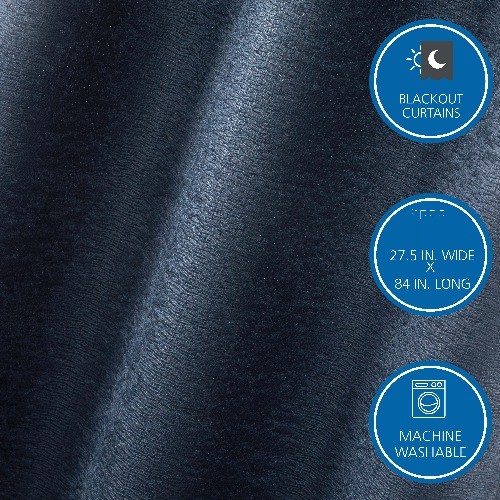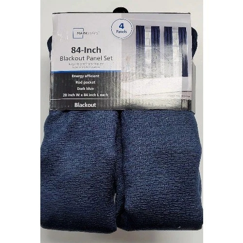 The Mainstays 4 of a Kind Blackout Curtain Panel Set combines style with functionality. These curtain panels, in a convenient four-piece set, are crafted in durable navy polyester, effectively blocking light for enhanced privacy. The rod pocket design allows for easy installation and effortless hanging—perfect for bedrooms, home theaters or spaces requiring light control, so you have a sleek and restful ambiance. Includes: 4 panels Dimension per Curtain: Each, 28" W x 84" L Hanging Style: Fits rod up to 1" in Diameter Light Filtration: 99% Blackout; light reducing Material: 100% Polyester Care: Machine washable Country of Origin: Imported Why You’ll Love It: Blackout properties filter out the sun; perfect for sleeping in or mid-day movie marathons. Style Tip: For windows you open often, choose sill length. For a casual look, let the fabric fall a few inches below the window. For a tailored or dramatic look, choose floor length curtains to make your windows a focal point. 4 of a Kind Blackout Curtain Panels in Navy from Mainstays