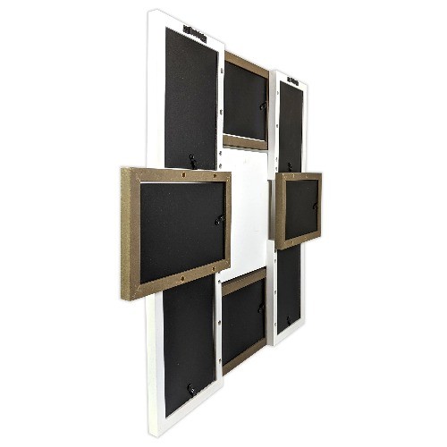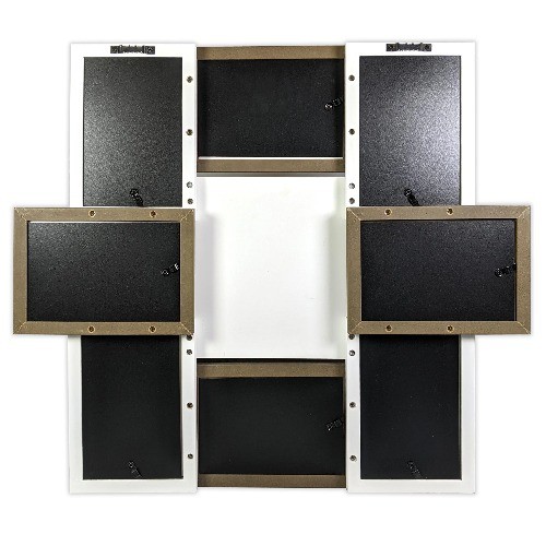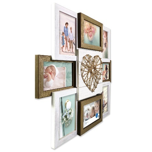 The Mainstays String Rustic 8 OP Collage Frame is the perfect addition to any home. Complete with 8 openings, this frame is equipped to hold your favorite 4x6 photos of your loved ones. Four horizontal and four vertical photos will make this collage complete. The frame has a beautiful 3D aspect to it which makes this frame so special. Threaded string looped on pins in the shape of a heart is displayed with a plank background. Easily tie in this piece to any room as the collage's light and dark contrasting frames go with almost everything. The frame consists of wood composite and is ready to be hung upon receipt. Measuring in at 20in tall and 18in in length, this frame is sure to make a statement. Weighing only about 4lbs, the frame is sure to be easy to hang and have little to no stress on your walls. Mainstays 20" x 18" Manufactured Wood Picture Frames, White: Has 8 - 4x6 Photo openings. Suitable for 4 vertical photos and 4 horizontal photos. Multi colored Rustic Collage. Can be a great addition to any room in the house. Lightweight and easy to hang. 18in L X 2in W x H 20in