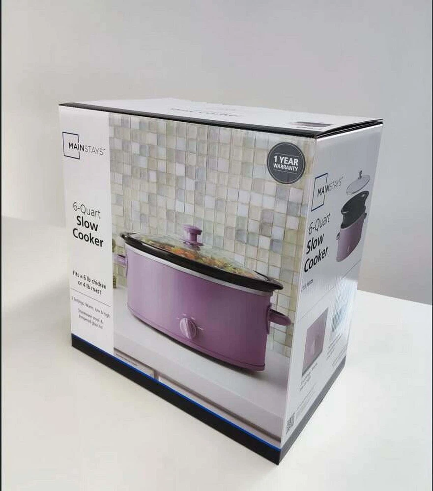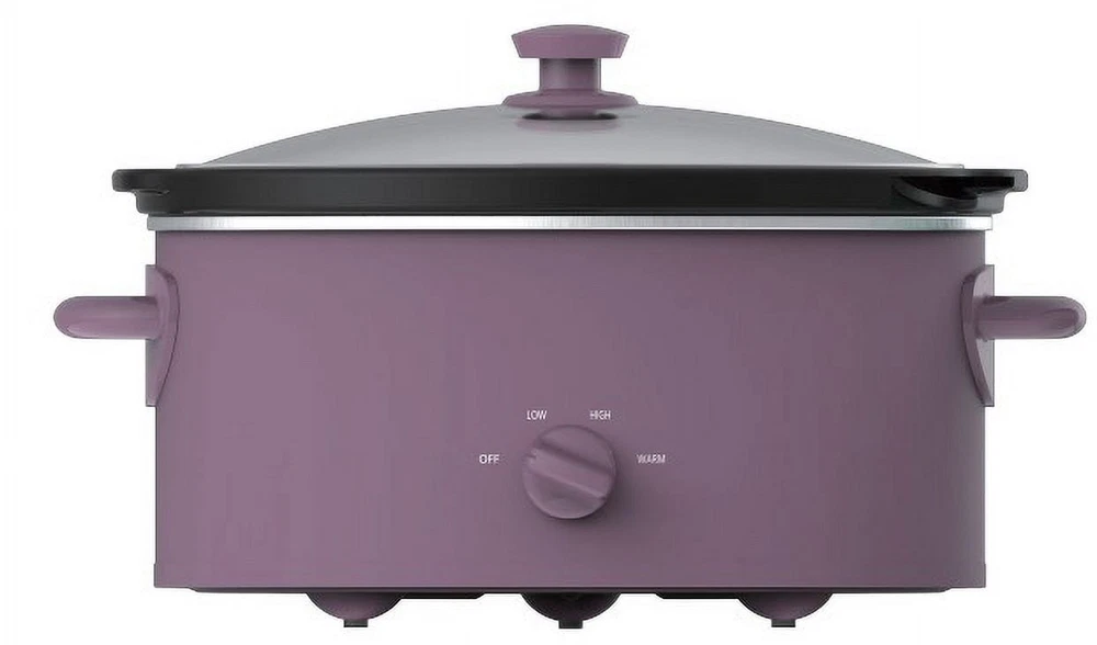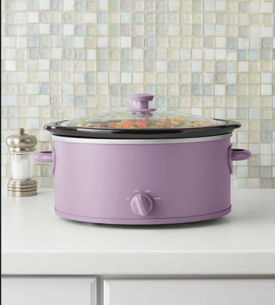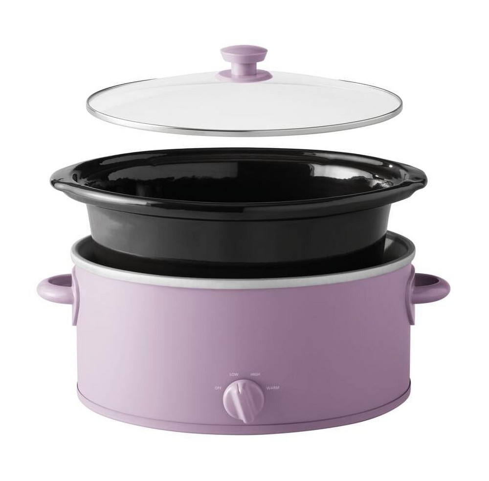 The Mainstays 6 Quart Slow Cooker is the perfect kitchen appliance for those who enjoy delicious, homemade meals with minimal effort. With its large 6 quart volume capacity, this slow cooker is perfect for families or for meal prep, allowing you to cook large portions of your favorite recipes and save time in the kitchen. The trendy Lilac Bloom color exterior of the slow cooker is not only durable and long-lasting, but also stylish and modern, making it a great addition to any kitchen. Three temperature settings - low, high and warm - allows you to customize your cooking to suit your needs. Low setting is perfect for slow-cooking meats and stews, while the high setting is ideal for cooking soups and chili. The warm setting is great for keeping your food at the perfect temperature until you're ready to eat. The Mainstays 6 qt. Slow Cooker also features a glass lid that seals in moisture and flavor, and the cool-touch handle, making it easy to open and close the slow cooker. Purchase a new Mainstays 6 Quart Slow Cooker in Lilac Bloom and start cooking delicious, homemade meals today. MODEL# MS8400778514-09 6 quart volume capacity for cooking large portions Removable stoneware 6 qt. crock for easy cleaning Makes delicious, homemade meals with minimal effort Condition: New Brand: Mainstays Model: MS8400778514-09