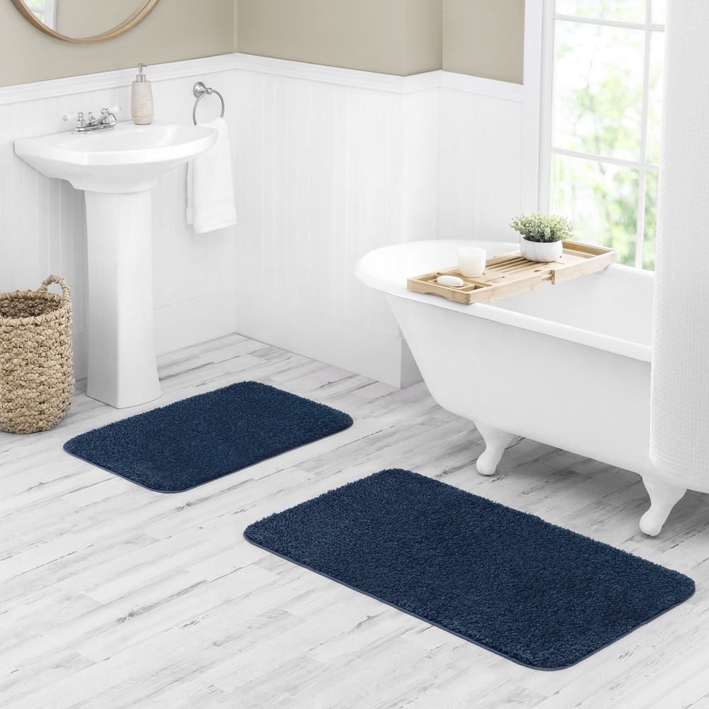 Step out and experience the functionality and durability of a basic bathroom rug. Made with plush looped 100% polyester, this rug is designed for ultimate comfort and features non-slip material for added safety. Its fade-resistant color and stain-resistant fibers keep it looking vibrant and clean for years. Combining comfort with durability, it's a smart and practical addition to your bathroom. Ultra-soft: Feels soft and comfortable underfoot. Stain-resistant: Maintains a clean look even with spills or dirt. Non-slip backing: Keeps the rug in place, preventing slips and accidents. Bathroom Rug Care: Machine wash separately in warm water, gentle cycle. If bleaching is necessary, wash with 1.5 oz of chlorine bleach and 1.5 oz of bleach-free detergent. Tumble dry low. Do not dry clean. Available in a variety of colors to mix and match with bathroom decor