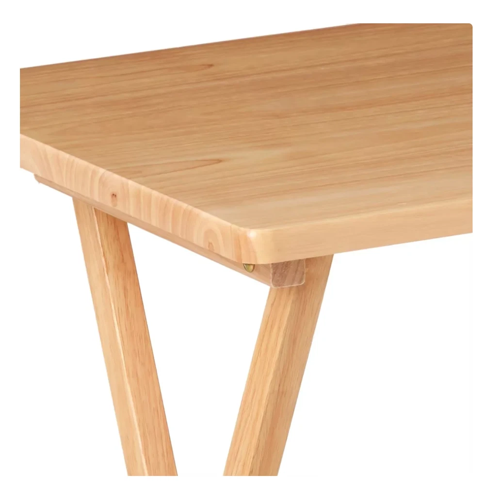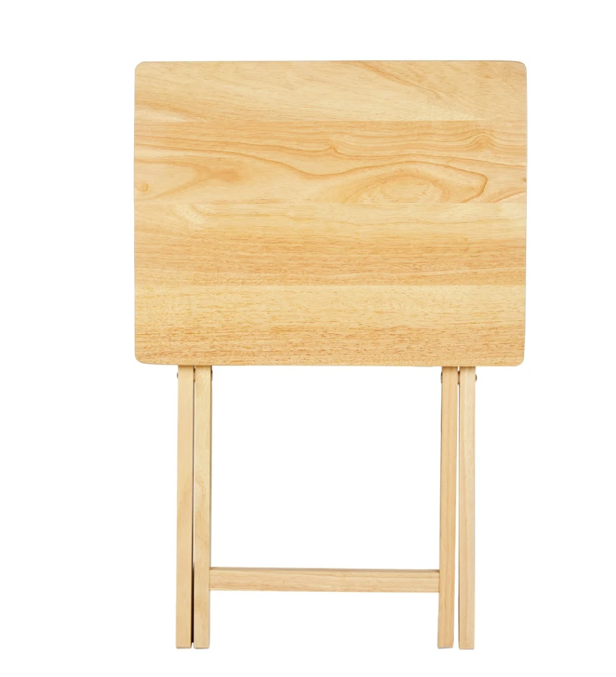 Product details Mainstays Indoor Single Folding TV Tray Table Natural table unfold dimension is L 19 x W 15 x H 26 inches. Mainstays Indoor Single Folding TV Tray Table is made up of 100% solid rubberwood which makes the table durable, sturdy and reliable. Natural color finish Aesthetics: Provide warms natural touch to any space providing versatile looks that compliments various interior styles for any home decor. Folding design of Mainstay table features adds an extra layer of convivence, making it easy to store, or transport the table when not in use. Saving valuable spaces. Mainstays Indoor Single Folding TV Tray weight is 3.54 KG. This Mainstays tables are relatively lightweight, making it manageable to move around, while still offering the stability needed for practical use. Elevate your living space with the Mainstays Indoor Single Folding TV Tray Table in Natural—a stylish, functional, and hassle-free addition made from high-quality 100% solid rubberwood. Order now to enjoy the perfect blend of convenience, durability, and design. Compact and Functional Design: The Mainstays Indoor Single Folding TV Tray Table boasts dimensions of L 19 x W 15 x H 26 inches, providing a convenient and compact surface for a variety of activities. Lightweight and Portable: Weighing just 3.54 KG, this table is designed for easy portability, allowing you to move it effortlessly around your home to meet your dynamic needs. No Assembly Required: Enjoy the ultimate convenience with this TV tray table—no assembly is needed. It arrives fully assembled and ready to use, saving you time and effort. Premium Material: Crafted from 100% solid rubberwood, this table offers not only durability but also a natural and elegant aesthetic. The solid wood construction ensures a stable and reliable surface for your activities. Natural Elegance: The natural finish of the rubberwood adds a touch of warmth and sophistication to your space. Its neutral aesthetic effortlessly complements various decor styles, making it a versatile addition to your home. Versatile Usage: Whether you're enjoying a meal, working on your laptop, or need an extra surface for various activities, this folding table is designed to meet your versatile needs. Space-Saving Folding Feature: When not in use, the table easily folds flat for efficient storage. Perfect for smaller living spaces, this feature allows you to reclaim valuable space when the table is not in use.