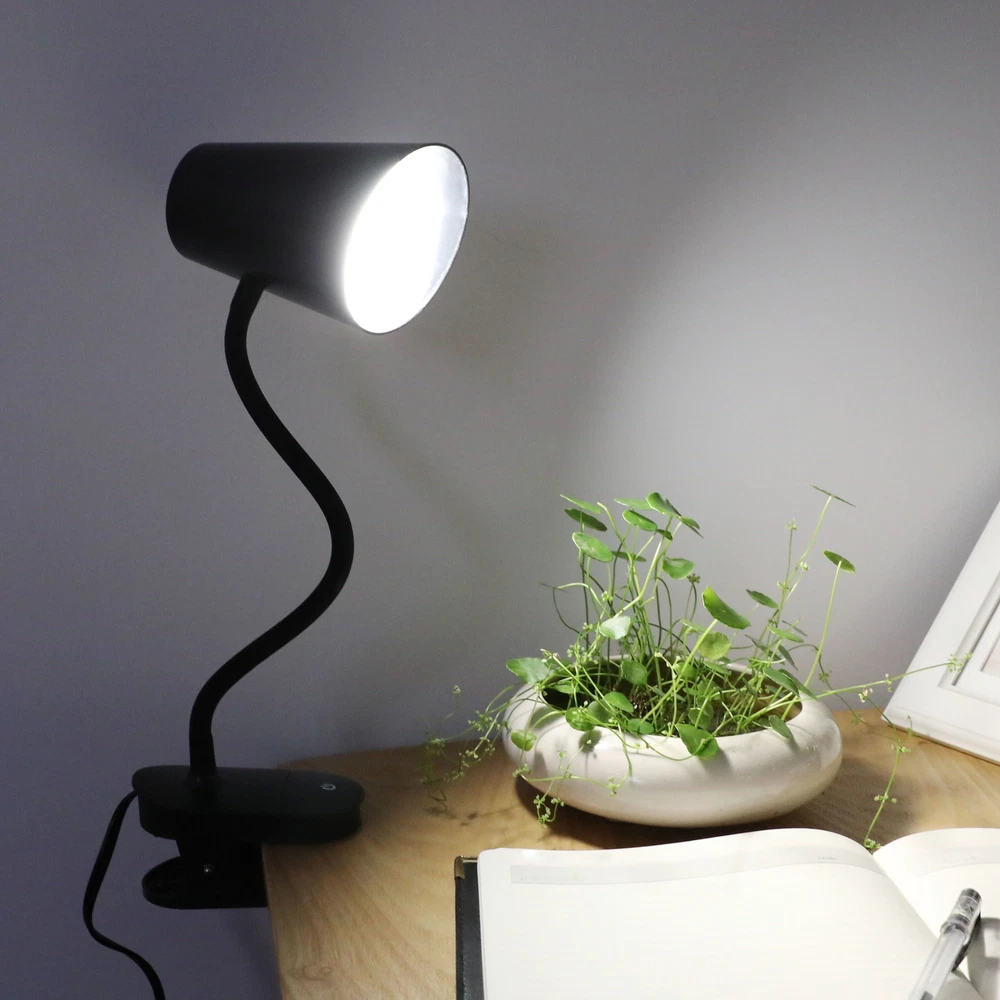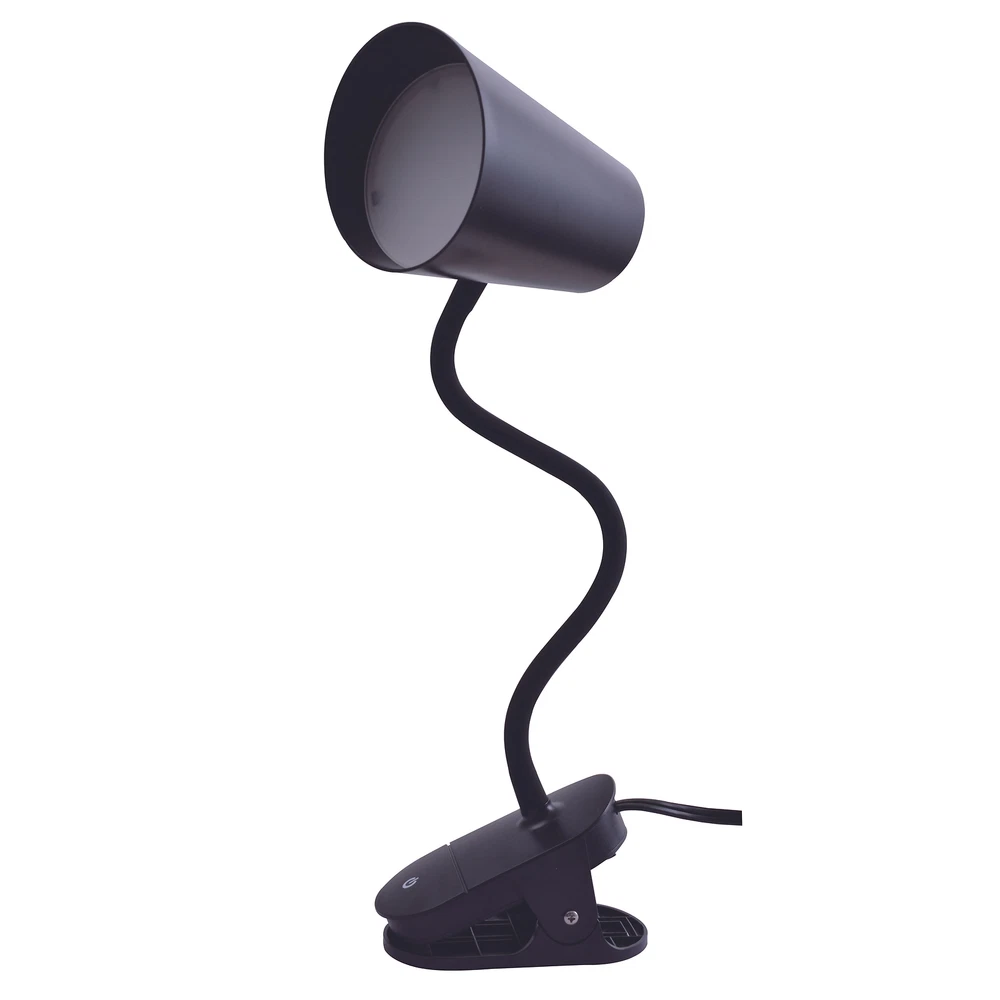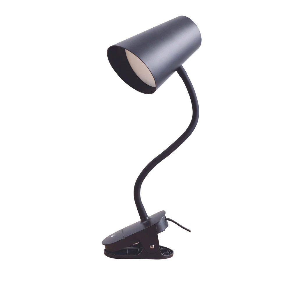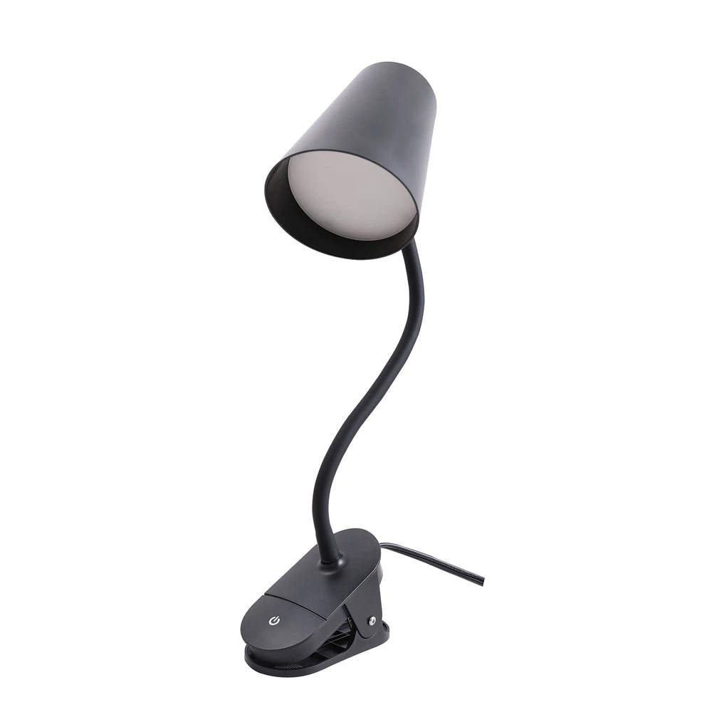 The Mainstays LED Clip Light with Flexible Gooseneck uses energy saving and warm LED light, with no flicker or radiation, which will help to protect your eyes from strain. This clip lamp offers a large light-illuminating area and better heat dissipation to relieve the fatigue caused by a long-time reading. The Mainstays LED Clip Light with Flexible Gooseneck features a versatile, sturdy clip that easily and securely attaches onto any surface. You can clip this lamp on a variety of surfaces, such as a bed headboard, table and desk, and more! The gooseneck can be bent freely to adjust the height and direction of the lamp with its versatile flexibly, and can even be rotated 360°, allowing you to adjust the lamp to any angle you want. Suitble for all ages. Features warm LED lighting The versitile and modern gooseneck can be bent and adjusted freely to set the preferred height and direction of the lamp The clip uses a non-slip gasket to make the lamp more stable Watts: 4 W Voltage: 120V Color Temperature: 4000K Product Dimension: 4.72''L x 3.54''W x 18.5''H Color: Black Weight: 0.84 Ibs Suitable for all ages