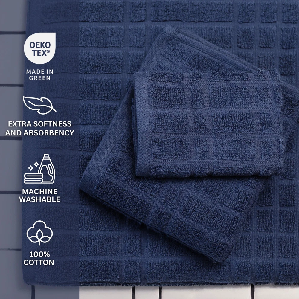 Upgrade your bathroom with the Mainstays Performance 6-Piece Bath Set, designed for everyday comfort and lasting durability. Crafted from 100% cotton, these towels offer a soft yet absorbent feel, perfect for drying off quickly after a shower. The set includes two generously sized bath towels (30" x 54"), two hand towels (16" x 26"), and two washcloths (12" x 12"), giving you everything you need for a refreshed bathroom setup. Featuring a unique all-over texture on one side and a smooth, solid reverse, these towels deliver both style and versatility. Plus, they’re Oeko-Tex Made in Green certified, ensuring they meet high environmental and safety standards. Whether you're stocking up for your home or upgrading your guest bathroom, this set offers the perfect blend of performance, quality, and value. About this item 6-piece set - Includes 2 bath towels, 2 hand towels, and 2 washcloths. 100% cotton - Soft, absorbent, and gentle on skin. Textured design - Stylish all-over texture on one side, smooth solid reverse. Generous sizing - Bath towels (30" x 54"), hand towels (16" x 26"), washcloths (12" x 12"). Everyday durability - Designed for long-lasting performance and repeated washing. Eco-friendly certification - Oeko-Tex Made in Green certified for sustainability and safety. Versatile & stylish - Perfect for home, guest bathrooms, or dorms. On Jul 17, 2025 at 01:49:11 PDT, seller added the following information: