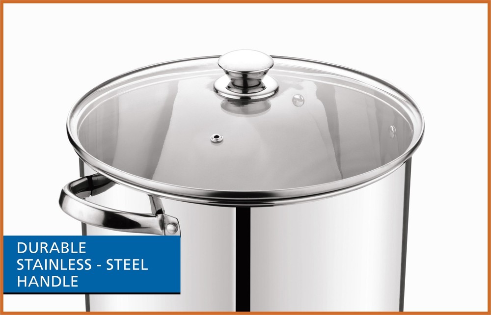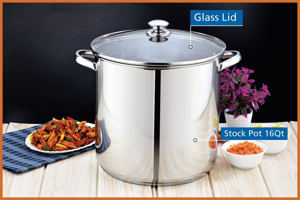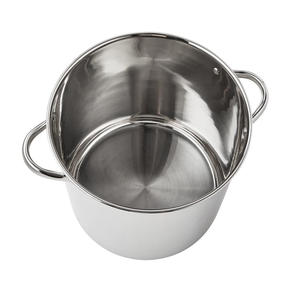 Prepare amazing sauces, soups, pastas, and more with the sizable Mainstays Stainless Steel 16-Quart Stock Pot with Glass Lid. This extra-large stock pot measures 11.02”L x 11.02”W x 10.63”H and is perfect for cooking family meals for any occasion. Designed with stylish stainless steel and glass, it’s sure to coordinate with your existing cookware. This sturdy stock pot features stay-cool handles and a helpful, transparent glass lid, along with durable, stainless steel construction. Ideal for helping you feed your family and friends at get-togethers, backyard barbecues, celebrations, and other special events, the Mainstays Stainless Steel 16-Quart Stock Pot with Glass Lid is a must-have cookware item in any kitchen. Mainstays Stainless Steel 16-Quart Stock Pot with Glass Lid, Induction Compatible, Stainless Steel, Dishwasher Safe Sizable stock pot is perfect for preparing amazing sauces, soups, pastas, and more Dimensions: 11.02”L x 11.02”W x 10.63”H Weight: 4.84 lbs Induction safe for versatile cooking options Constructed from durable stainless steel with a transparent glass lid