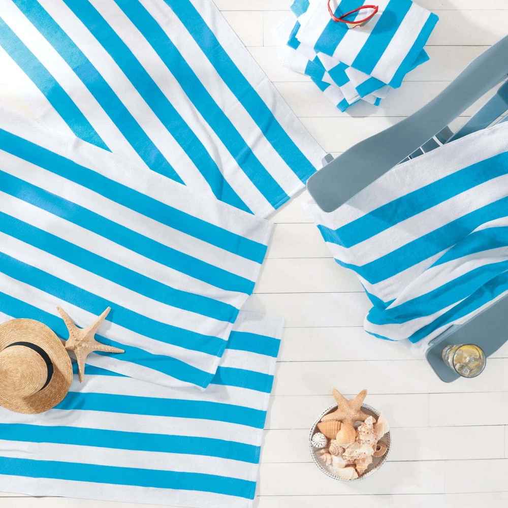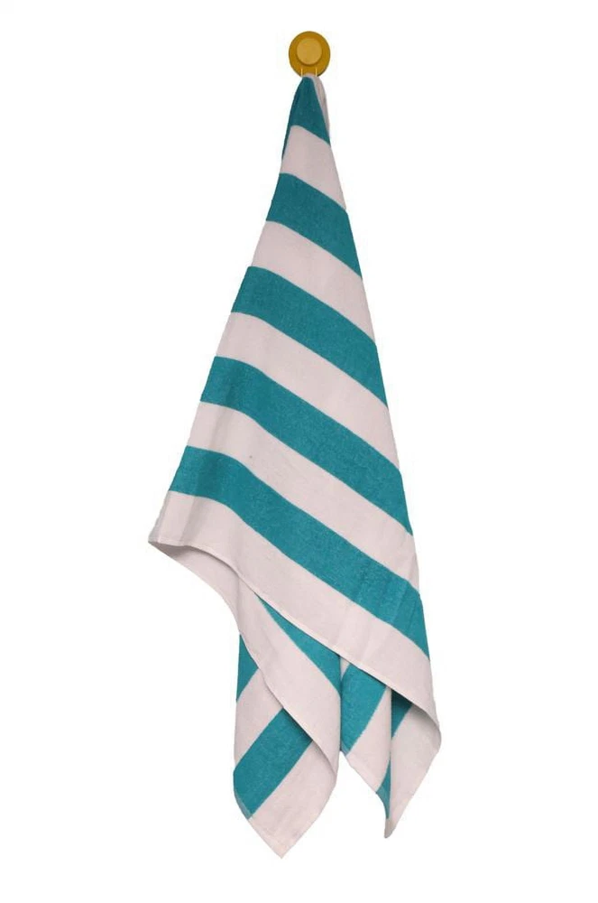 The soft and absorbent Mainstays Cabana Teal and White Stripe Beach Towel is the ideal companion for so many fun outdoor activities. This bright, multi-colored towel features a vibrant pattern of teal and white stripes and includes a handy hanging loop. Use it to dry off with, lie on, or wrap up in--its large 28 by 58 inch size makes it quite versatile. The durable towel with reinforced side hems is machine washable for easy care. The soft, absorbent, and colorful Mainstays Cabana Pink and White Stripe Beach Towel is a must-have for all your favorite fun-in-the-sun adventures, from beaches and pools to parks and festivals particularly for every adults age. Mainstays Teal and White Stripe Beach Towel Soft and absorbent beach towel is ideal companion for fun outdoor activities Bright, multi-colored towel features blue and white stripes and a handy hanging loop Colorful beach towel is a must-have for fun-in-the-sun adventures at beaches, pools, parks, and festivals Large size makes towel versatile with a variety of uses Dimensions: 58"L x 28"W For every adults age group