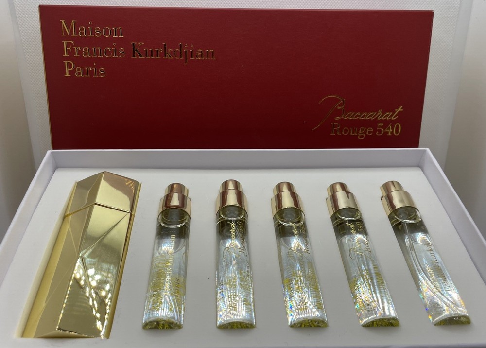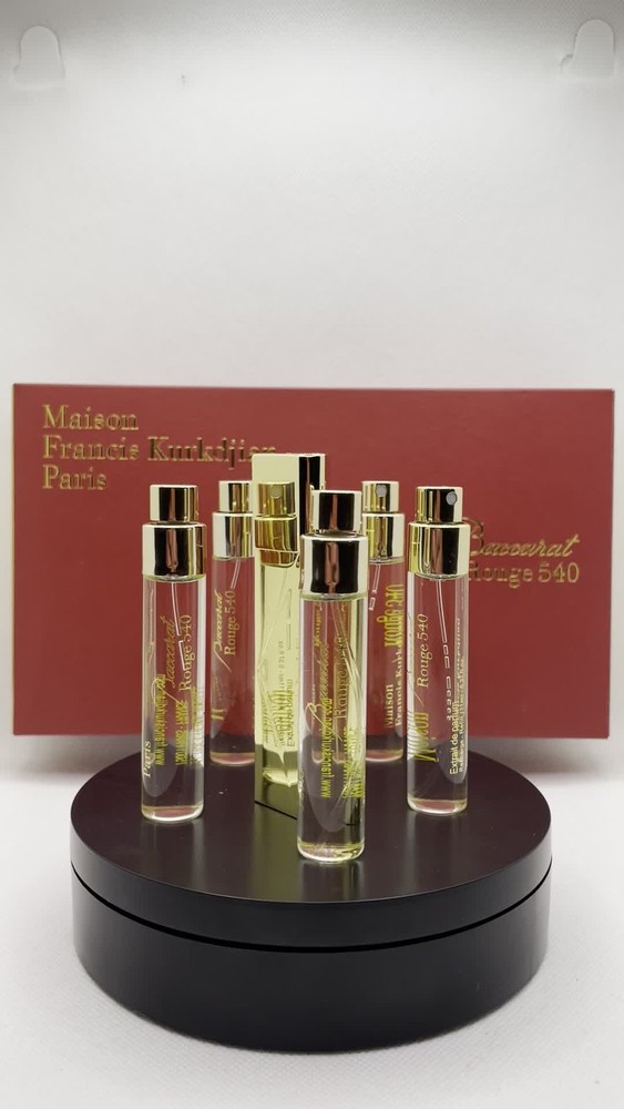 - Maison Francis Kurkdjian Baccarat Rouge 540 Extrait is a luxurious fragrance with a size of 11 ML each 1.9 oz total divided into 5 bottles of 11ml each. - 5 Additional 1.5 ML Samples of MFK 540 EDP included also as a Gift!! - This unisex fragrance is known for its subtle yet sophisticated scent, making it suitable for various occasions. Made in France by the prestigious brand Maison Francis Kurkdjian, this fragrance is perfect for those who appreciate high-quality perfumes in travel size, discovery sets, or gift sets. The spray formulation ensures easy application, while the elegant packaging adds a touch of refinement to any fragrance collection.