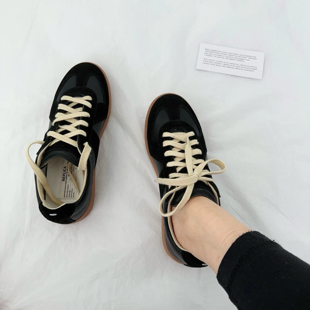 Maison Margiela Calfskin Replica Black low-top athleisure sneakers new