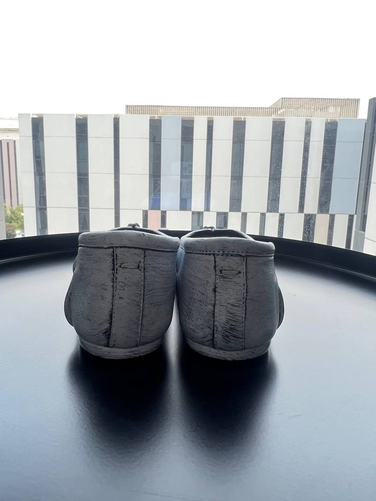 Maison Margiela Tabi Flat Ballerinas – Black & White, Size 40 Step out in style with these iconic Maison Margiela Tabi flat ballerinas featuring the signature split-toe “Tabi” design inspired by traditional Japanese footwear. Crafted from premium black calf leather, these flats are elevated with a unique, hand-painted white pattern over the black base. Each pair is individually finished, making every shoe one-of-a-kind and highlighting Maison Margiela’s renowned artisanal craftsmanship. Product Details: Size: EU 40 (approx. 26 cm foot length) Color: Black with hand-painted white pattern Material: Smooth calf leather upper, leather lining and sole Signature split-toe design unique to Maison Margiela Slip-on style with elegant leather bow detail on the front White stitching detail on the back heel as a signature logo replacement Made in Italy Condition: New Shipping: Ships from the UAE. Fast and secure worldwide delivery available. Your order will be carefully packaged and dispatched promptly to ensure it arrives safely and quickly. These Maison Margiela Tabi ballerinas are perfect for fashion enthusiasts who appreciate bold, artistic design and exceptional craftsmanship.