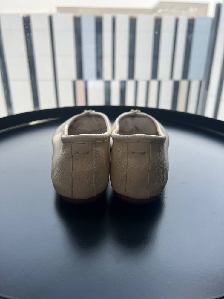 Maison Margiela Tabi Flat Ballerinas – White, Size 37 24.5cm Elevate your style with these iconic Maison Margiela Tabi ballerinas in classic white. Crafted from premium soft nappa leather, these shoes feature the signature split-toe “Tabi” design inspired by traditional Japanese footwear. Product Details: Size: EU 37 (approx. 24.5 cm foot length) Color: White Material: Nappa leather upper, leather lining and sole Signature split-toe design Slip-on style with delicate leather bow detail at the front White stitching detail on the back heel Made in Italy Condition: New Shipping: Ships from the UAE. Fast and secure worldwide delivery available. Your order will be carefully packaged and dispatched promptly to ensure it arrives safely and quickly.