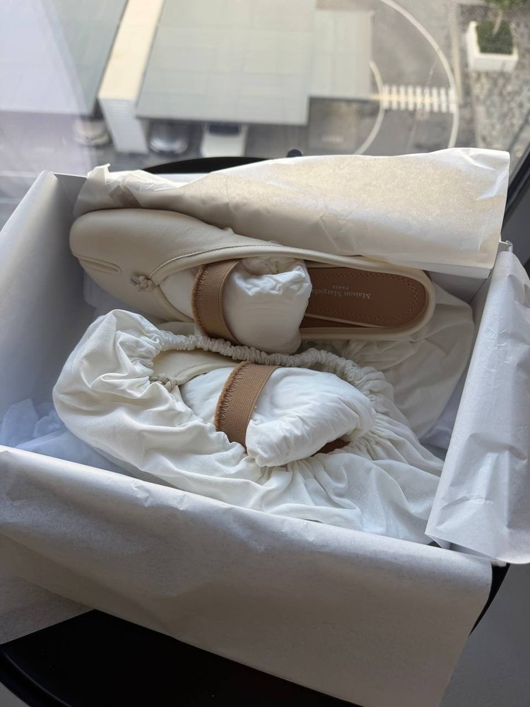 Maison Margiela Tabi Flat Mules Ballerinas – White, Size 37 24.5cm Elevate your style with these iconic Maison Margiela Tabi ballerinas in classic white. Crafted from premium soft nappa leather, these shoes feature the signature split-toe “Tabi” design inspired by traditional Japanese footwear. Product Details: Size: EU 37 (approx. 24.5 cm foot length) Color: White Material: Nappa leather upper, leather lining and sole Signature split-toe design Slip-on style with delicate leather bow detail at the front White stitching detail on the back heel Made in Italy Condition: New Shipping: Ships from the UAE. Fast and secure worldwide delivery available. Your order will be carefully packaged and dispatched promptly to ensure it arrives safely and quickly.