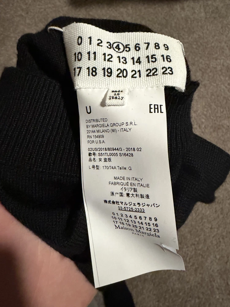 Maison Margiela Tabi Split-Toe Socks Size 1 Color: Black Material: 100% Wool Made in Italy Authentic Maison Margiela tabi split-toe knit socks. Women’s Line 4 (indicated by circled “4” on label). Never worn. No pulls, stains, or flaws observed. Original internal tags attached. Model code: S51TL0005 S16428 Soft wool construction with signature split toe design. Ships carefully packaged.
