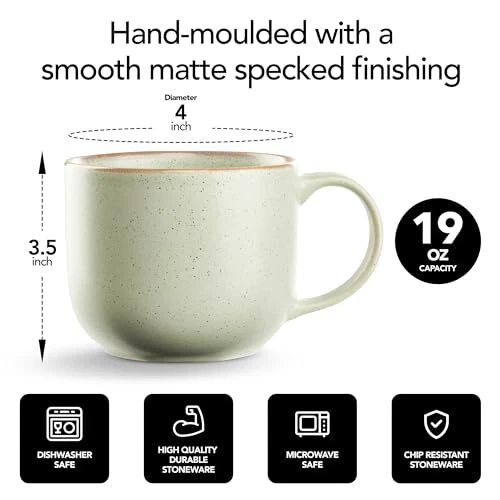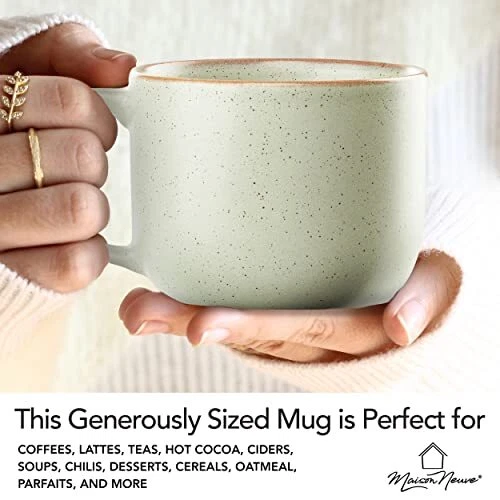 Return Policy Fast Delivery Trusted seller Maison Neuve Riverside Collection 4-Piece Mug Set - Hand Crafted Ceramic Stoneware Mug Set, Modern Dining Mugs - Large & Multipurpose Shape Mugs, Microwave & Dishwasher Safe - Sage Green, 19 Oz. Product Description Premium 4-Piece Mug Set: Our dinnerware mug sets are crafted with love and care. This Riverside mug set for 4 is complete with 4 large 19 oz. mugs that are great for serving your favorite beverages. Handcrafted Stoneware Elegance: Crafted by our skilled artisans with natural overtones and rich curves. Our hand-finished mug set has a refined speckle texture look to complement your table setting and plate sets. Made for Hot & Cold Beverages: Our mug set has a large, multipurpose shape and chip-resistant design. It's great for coffees, lattes, teas, hot cocoa, ciders, soups, chilis, desserts, cereals, oatmeal, parfaits, and more. Luxurious Everyday Dining: Designed with a premium matte finish in four colors. Each piece is glazed and painted by hand, so no two pieces are exactly alike for a unique touch to your dinnerware. Made for Every Household: Our mug set is an excellent housewarming and wedding gift. Click 'Add to Cart' now and mix and match these ceramic mugs with your plates and bowls. Care For Your Ware: To remove silverware marks on dishes, mix 2 parts baking soda with 1 part warm water into a paste. Apply, rub gently for 1 min, rinse. For stubborn marks, use Bar Keepers Friend. Avoid metal scouring pads. Shipping Returns Payment Shipping Shipping is FREE to all addresses other than APO/PO boxes in the lower 48 states. All our stock ships from US-based warehouses. Shipped via USPS or UPS (depending on location and package weight) Unless stated otherwise, all orders will ship within 24-72 hours of your payment being processed. Check our feedback to see the great reviews of FAST shipping we offer. Returns Seller does not accept returns Payment We currently accept payment via eBay managed payments only. Once payment is cleared, we will dispatch your shipment within 1-3 business days. Please refer to the "Shipping" tab for more information regarding shipping speed to your destination.