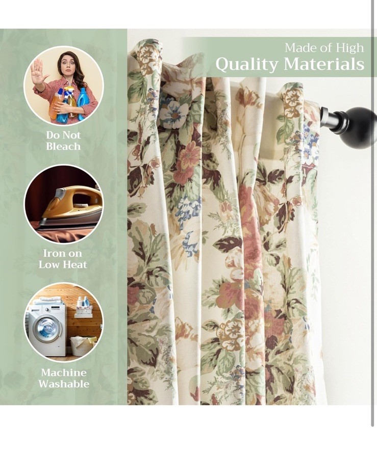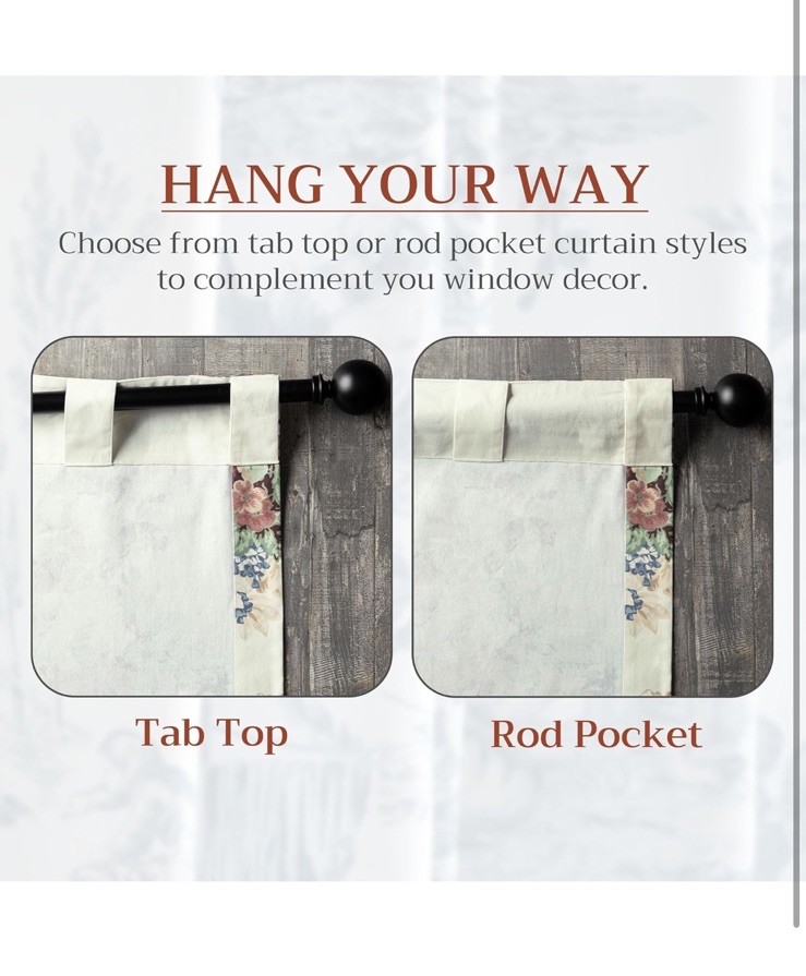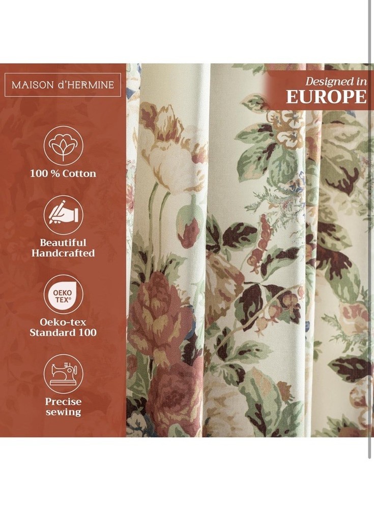 New item! Package includes: 1 cotton curtain panel (50"x84") featuring both a rod pocket and back loop for versatile hanging options. Designed in Europe and made in India, this 100% cotton curtain adds a decorative, elegant touch to any room with ease High-quality cotton: Made from 100% breathable cotton, this curtain with rod and loop pockets offers a soft, elegant touch to any space. Ideal for living room, bedroom, dining, or home office, it brings charm and character without overwhelming your décor Artistic design: These printed window panels feature hand-painted watercolor motifs inspired by European artistry. Each design is rich in detail and color, giving your interiors a warm, timeless, and elegant aesthetic Stylish home upgrade: Say goodbye to basic drapes. These cotton curtains instantly elevate your space with vibrant prints—ideal for a seasonal refresh, decor upgrade, or everyday elegance in modern and classic homes Easy care: Machine wash warm with like colors, do not bleach, tumble dry low, and warm iron if needed. Durable and easy to maintain, these washable cotton curtains retain their beauty and quality through regular use
