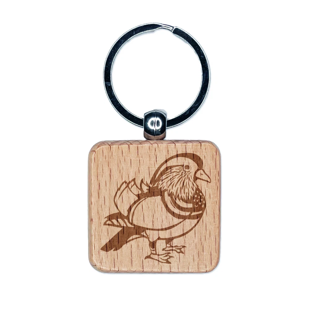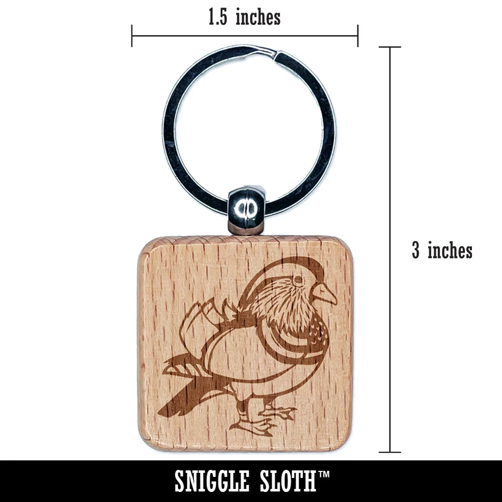 Majestic Mandarin Duck Engraved Wood Square Keychain Tag Charm