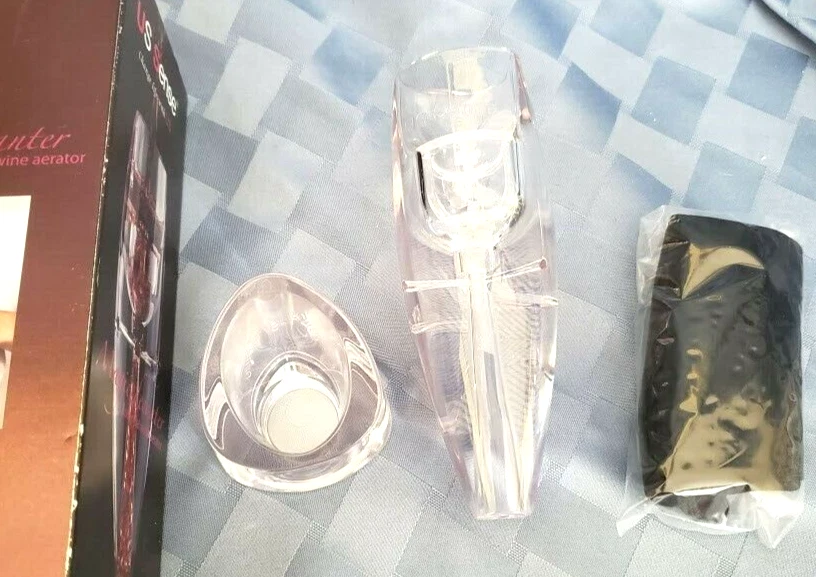 This Decanter Essential Wine aerator and carry pouch are a Estate sale find and in great condition. Comes with Original Box and Instructions. All Parts are clear acrylic. Aerator Filter, Wine Pourer with Stand. PLEASE READ so we’re on the same page of expectations. I do my best to describe any defects, flaws or damage that I see. Please look at all photos for more on condition. You will get what IS IN THE PHOTO not another one just like it. If I see it, I will report it in the auction description. If you have any questions, please ask before bidding, so that I can verify anything you might have doubts about. Returns: within 30 days. 10 Days, if obvious damage due to shipping. DAMAGED ITEMS: Any damage in shipping must be reported within 2 days of receipt, and all packaging materials must be retained in the event that the carrier needs to inspect it. Photos of the damage must be sent through eBay Messages in order for me to open an insurance claim. If it is a shipping problem please send me photos of box before and after opening. Shipping: I will ship within 1 business day, once I have received the payment. Unless stated, insurance will only be upon your request. Feedback: Once you have left feedback, so that I know the item has arrived and it is to your satisfaction. Then I will leave feedback. If for any reason you are not satisfied, please let me know first. So that I can correct any issues that arise. Thank you for checking out my Sales and Auctions. Track Page Views With Auctiva's FREE Counter Thank you for looking at my items