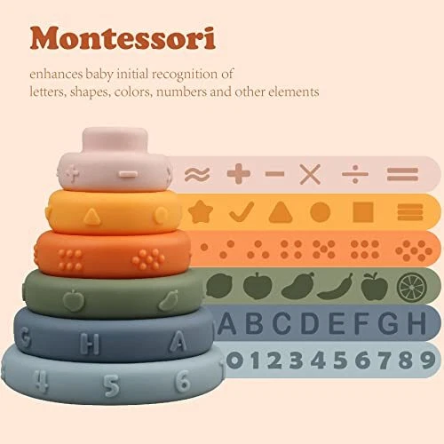 Majobee Baby Sensory Stacking Toys Rings Montessori Infant Blocks Toys for Ed...