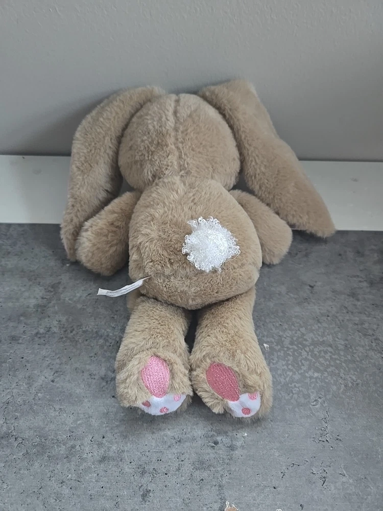 Make Believe Ideas Bunny Plush Stuffed Toy Tan Animal Rabbit Pink Polka Dot Ears Has been gently loved from a pet free smoke free home