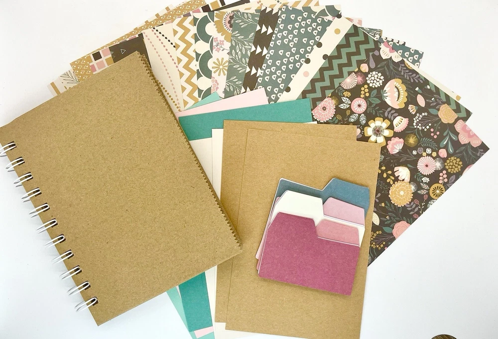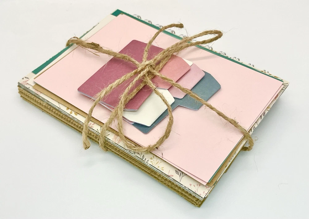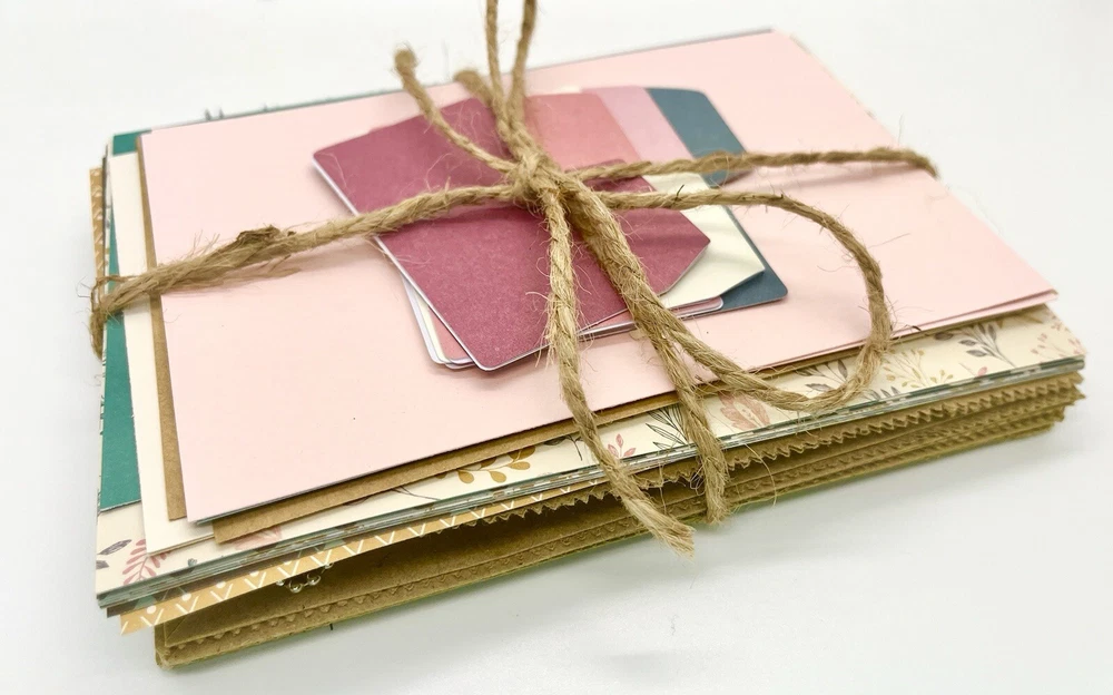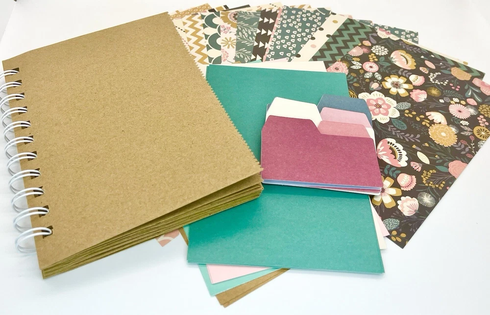 Kit Includes: 1 paper bag album, 10 sheets 5.5”x4” card stock, 20 sheets 6”x4.75” designer paper and 5 adhesive tabs. Made with 5 specialty bags that are sturdier than standard bags. Bound with white wire. Book Measures about 6 inches x 4 3/4 inches. Enjoy!