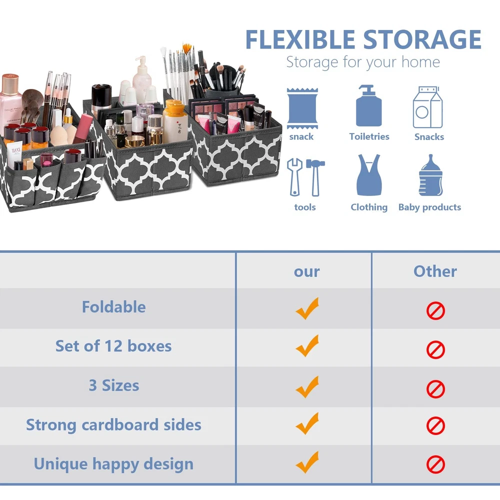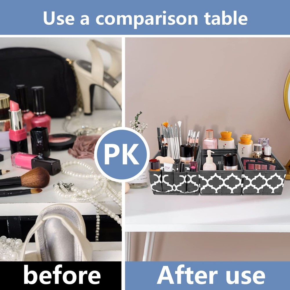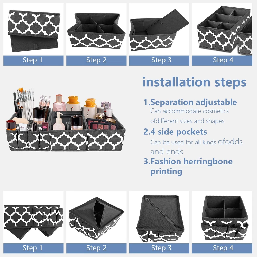homyfort Makeup Basket Organizer, Fabric Portable Cosmetic Storage Organizer with Divider, Foldable Small Bins for Organizing Vanity, Bathroom Counter, Office, Set of 3 Grey π[Versatile & Adjustable Cosmetic Organizer] - The small baskets for organizing is adjustable which can divide them into five compartments at most.The Little pockets of the square organizer for brushes, mascara and lipsticks, 4 larger sections for powders, foundation, etc. π[Large Capacity] - The 3 pack makeup storage organizer have room for so many things, such as brushes,nail files, lotion, lip balm,cosmetic items and so on. When not in use, the bottoms can be unzipped and folded down. The organizers are very portable for travel. π[Premium eco-friendly material] - The small organizer bins are made of premium non-woven breathable fabric and odorless durable cardboard. The size of rectangle organizer size is 8.26 x 5.5 x 3.9 inches, size of the square organizer is 5.9 x 5.9 x 4.72 inches. π[Small and Beautiful] - You can put your cosmetic, skin care and brushes into the small baskets for organizing. It's also suit for office desk storage, bathroom organizer countertop or clothes drawer organizers. The Plenty of pockets on the side is made for smaller items like facial moisturizer, eye makeup remover etc. π[Foldable and Eco-friendly] - All our makeup basket organizer can be foldable and easy carrying. All the fabric we used are environmental. Please feel free to use. SHIPPING Domestic Buyers - We have confidence in our products, but if you are not fully satisfied please contact us within 30 days of purchase and you will get full refund. - We ship within 3 business days of payment, usually sooner - We offer FREE shipping on all orders! - We only ship to the lower 48 states, no APO/FPO addresses or PO Boxes allowed International buyers β please note: Import duties, taxes, and charges aren't included in the item price or postage cost. These charges are the buyer's responsibility. - Please check with your country's customs office to determine what these additional costs will be prior to bidding or buying. * Order Cancellation Policy ** You can return a product for up to 30 days from the date you purchased it. 1. The seller reserves the right to cancel the special case only due to eBay cancellation fee. 2. The decision of seller is the final. 3. The seller will respond to the cancellation request within 2 business days. Please wait for the result of cancellation. 4. In case the cancellation is not completed by some reasons, the buyer can follow the options below to get the refund. 4.1 The buyer can reject the item when it arrives. 4.2 The buyer can send the item back to the seller within 30 days If the buyer receives item (USA Shipment ONLY). The seller will provide the FREE return label to the buyer when the buyer opens " Return Item" case on eBay by using the reason as "Change my mind" ONLY. 5. When buyer has placed the order. The order will be processed and completed by automatic warehouse system within 5 minutes. In case that buyer sends the cancellation request after 5 minutes of placing the order, the request will be rejected. **Sending direct message to cancel the order is not allowed for every case.* Return Policy For the return case - If buyer would like to return the items for refund or replacement, please CONTACT SELLER to receive the free return label from seller. The refund or replacement will be processed with the tracking number of return label which is provided by seller only. The other ways of return which are not approved by seller will not be processed for the refund or replacement.