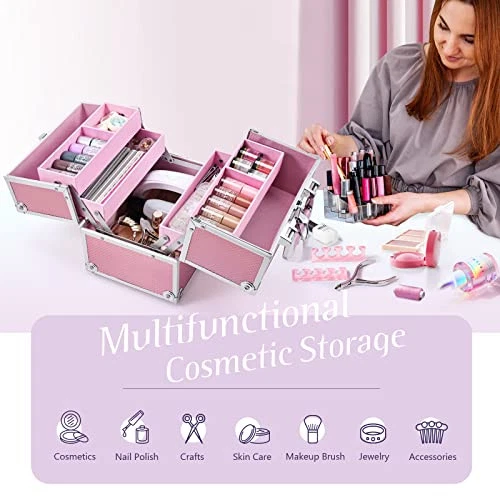 Return Policy Fast Delivery Trusted seller Makeup Train Case Cosmetic Organizer Case Portable Travel Storage Box 4 trays with Dividers Lockable Make Up Case for Makeup Artist, Nail Tech, Crafter Makeup Tools Makeup Toiletry Case Product Description Mermaid Glittery Pink Makeup Case: This size portable travel makeup case is 9.84 inches x 7 inches x 9.25 inches. It is suitable for makeup artists from beginners to professionals. ABS aluminum and metal reinforced corners have good wear resistance and are lightweight and durable. Smart Size Train Case: The extendable cantilever 4-tiers tray structure and the top tray with dividers. According to the different sizes of gadgets, you can arrange space, not only neatly placed items and can be fixed to prevent shaking and falling damage. T is also a large bottom that has great storage for organizing makeup tools, lipstick collections, and palettes. Portable & Lockable: The makeup train case is in a portable size with a large pink non-slip handle. It is also lockable with key for privacy and security in case of traveling. Easy to Clean: No worry about spilling powder or scratching. When your lipstick stains the trays, just wipe the surface with a damp cloth and it will be as new as ever. Best Present for Her: An ideal makeup organizer storage case, that keeps your dresser clean and neatly. It is classy enough as a gift and will store many great memories. Your friends or beloved ones would be happier when receiving such a nice gift on Valentine's Day, Christmas, New Year, Birthday, Wedding, and so on. Shipping Returns Payment Shipping Shipping is FREE to all addresses other than APO/PO boxes in the lower 48 states. All our stock ships from US-based warehouses. Shipped via USPS or UPS (depending on location and package weight) Unless stated otherwise, all orders will ship within 24-72 hours of your payment being processed. Check our feedback to see the great reviews of FAST shipping we offer. Returns Seller does not accept returns Payment We currently accept payment via eBay managed payments only. Once payment is cleared, we will dispatch your shipment within 1-3 business days. Please refer to the "Shipping" tab for more information regarding shipping speed to your destination.