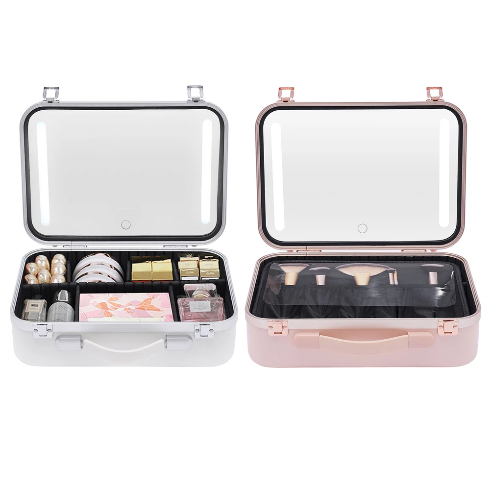 Specification Material: PC, Aluminum Alloy, Metal, Glass Color: Pink/White Style: Modern Process: Electroplating Power Supply Mode: Power Cord, Power Bank, Built-in Battery Rated Voltage: 5V Placement: Tabletop Type of Charging Port: Type-c Light Source: 88 * LED EU Energy Label Efficiency Labeling Class: A++to E Efficiency: E Battery Parameters: 2000mAh Lithium Battery Switch Type: Touch Screen Light Color: 6500K: 4600K: 3500K=Warm Yellow: Neutral: Cool Gross Weight: 1.8kg/3.96lbs Net Weight: 1.6kg/3.52lbs Package Size: 38.6*30.5*16.2cm/15.19*12*6.37in Product Size: 34*12*24cm/13.4*4.7*9.4in Storage Layer Depth: 7.5cm/3in Storage Layer Width: 9cm/3.5in, 14cm/5.5in Makeup Brush Board Size: 32.5 * 22.5cm / 12.79 * 8.85in Mirror Size: 33*23cm/12.99*9.05in 💖welcome to my store💖 Description The product integrates a high-definition mirror and intelligent fill light to solve the problem of insufficient light for daily makeup, illuminates the details of your makeup, restores the real color to meet your ultimate requirements for makeup, and enjoys an elegant and confident lifestyle. Key Features Sturdy and Durable : The PC material with the texture layer, coloring layer, and shaping layer composite structure is scratch-resistan t, waterproof , and pressure-resistant to serve you for a long time without damage. Three-color Dimmable : The three-color dimmable light allows you to easily adjust the brightness and light color (cool light, neutral light, warm light) to meet the needs of different scenarios. Long press to adjust the brightness, and lightly press to adjust the light color. Large Capacity : The deepen and widen makeup box (3*1.5*5.5 inch) provides you with enough storage space. The removable partition allows free adjustment of the storage structure to accommodate items of different sizes. Pink/White Available : The makeup case is available in elegant white and lovely pink, which can meet different needs and preferences. Excellent Endurance : 2000mAh capacity lithium battery makes the product last for more than eight hours in medium brightness to avoid frequent charging. Easy to Carry/Store : The lightweight and compact makeup case (weight 3.52 pounds, size 13.4*4.7*9.4 inches) is easy to carry and store, making it easy to use for travel and business trips. Easy to Clean : The smooth surface and simple structure provide you with easy cleaning allowing you to simply use a damp cloth to gently wipe. Ideal Gift : This makeup case with both practicality and beautiful appearance is an ideal gift for your girlfriend and lover on Valentine's Day, birthday, Halloween, Christmas and anniversaries, etc. Customer Service : We aim to provide quality products and services. If you have any problems, please feel free to contact us. We will reply and solve the problem for you as soon as possible. Details Charging Indicator : The indicator is red when charging and green when full so you can keep track of the charging status. It will automatically limit the current after fully charged without worrying about overcharging and can be used during charging. Type-c Charging Port : U niversal Type-c charging port allows you to easily charge it with the phone charging cable and power bank. Comfortable Handle : Ergonomically curved handle allows you to carry the case easily. Aluminum Frame : The strong, drop-resistant aluminum frame increases the durability and extends the service life of the product. Brush Storage Board: The shelf with multiple brush bags and dustproof board not only provides storage and dust protection, but also protects the mirror from scratches. Plated Hardware : The shiny rose gold plated hardware makes the makeup case more delicate and elegant. Metal clasps hold the case in place to prevent accidental spills. Anti-slip Feet : The four anti-slip feet at the bottom improve the stability of the product. Sensitive Touch Switch : The sensitive touch switch on the mirror allows you to easily adjust the light color and brightness. Application This makeup case is suitable for organizing and storing all kinds of cosmetics, skin care products, makeup tools, etc in bedrooms, bathrooms, dressing tables, etc. Specification Material: PC, Aluminum Alloy, Metal, Glass Color: Pink/White Style: Modern Process: Electroplating Power Supply Mode: Power Cord, Power Bank, Built-in Battery Rated Voltage: 5V Placement: Tabletop Type of Charging Port: Type-c Light Source: 88 * LED EU Energy Label Efficiency Labeling Class: A++to E Efficiency: E Battery Parameters: 2000mAh Lithium Battery Switch Type: Touch Screen Light Color: 6500K: 4600K: 3500K=Warm Yellow: Neutral: Cool Gross Weight: 1.8kg/3.96lbs Net Weight: 1.6kg/3.52lbs Package Size: 38.6*30.5*16.2cm/15.19*12*6.37in Product Size: 34*12*24cm/13.4*4.7*9.4in Storage Layer Depth: 7.5cm/3in Storage Layer Width: 9cm/3.5in, 14cm/5.5in Makeup Brush Board Size: 32.5 * 22.5cm / 12.79 * 8.85in Mirror Size: 33*23cm/12.99*9.05in Package Included 1*Makeup Case 1*Charging Cable 1*Makeup Brush Board Notes Please allow the slight color difference caused by the shooting light and 1-3cm error due to manual measurement. Please make sure you do not mind before you order. Payment Delivery details Terms of sales About us Contact us Payment We accept ebay payment 。 Fees such as import duties, taxes are not included in the item price or shipping costs. These charges are the buyer's responsibility. Delivery details Shipping: 2-9 working days to: USA Terms of sales We maintain high standards of excellence and strive for hundred percent customer satisfaction. Feedback is very important to us. We hope that you contact us immediately before you give neutral or negative feedback, so that we can address your concerns. It is impossible to address issues if we do not know about them! About us Your satis faction is our ultimate goal. We work hard to earn your trust and future business. Our certified technicians have tested each item before shipping. The unit comes with 1 year limited warra