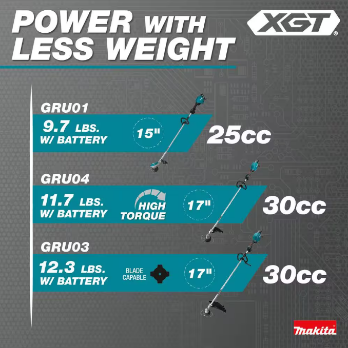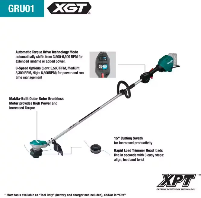 Makita GRU01Z 40V Max XGT Brushless 15" String Trimmer with Full