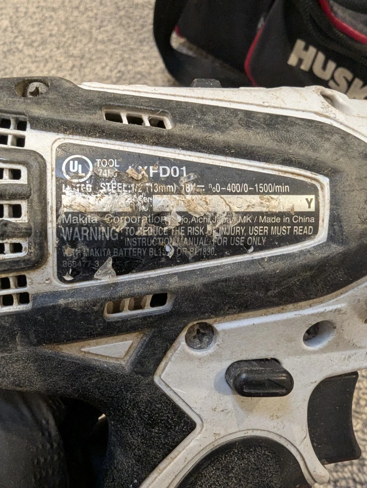 Makita LXFD01 18V LXT Lithium-Ion 1/2" Cordless Driver-Drill (Tool Only) This listing is for a pre-owned Makita LXFD01 cordless driver-drill. Unit has been tested and powers on properly with an 18V LXT battery (battery not included). Shows heavy cosmetic wear from use, including scratches, scuffs, and dirt, but remains mechanically functional. Ideal as a backup drill, jobsite tool, or for someone already using the Makita LXT platform. --- Features Model: Makita LXFD01 / XFD01 Voltage: 18V LXT Lithium-Ion Chuck Size: 1/2 in. (13mm) 2-Speed Transmission: 0–400 / 0–1,500 RPM Variable speed trigger Built-in LED light Cordless, lightweight design --- Condition Used – Heavy Wear Works properly (tested with my own Makita battery). Drill shows significant cosmetic wear, dust, and marks from jobsite use. No cracks in housing. Chuck opens/closes properly. Forward/reverse selector works. No unusual noises during operation. --- Includes Makita LXFD01 Driver-Drill (Tool Only) No battery No charger No accessories --- Shipping Item will be securely packed and shipped quickly. Tool weighs approximately 2.2 lbs (without battery).