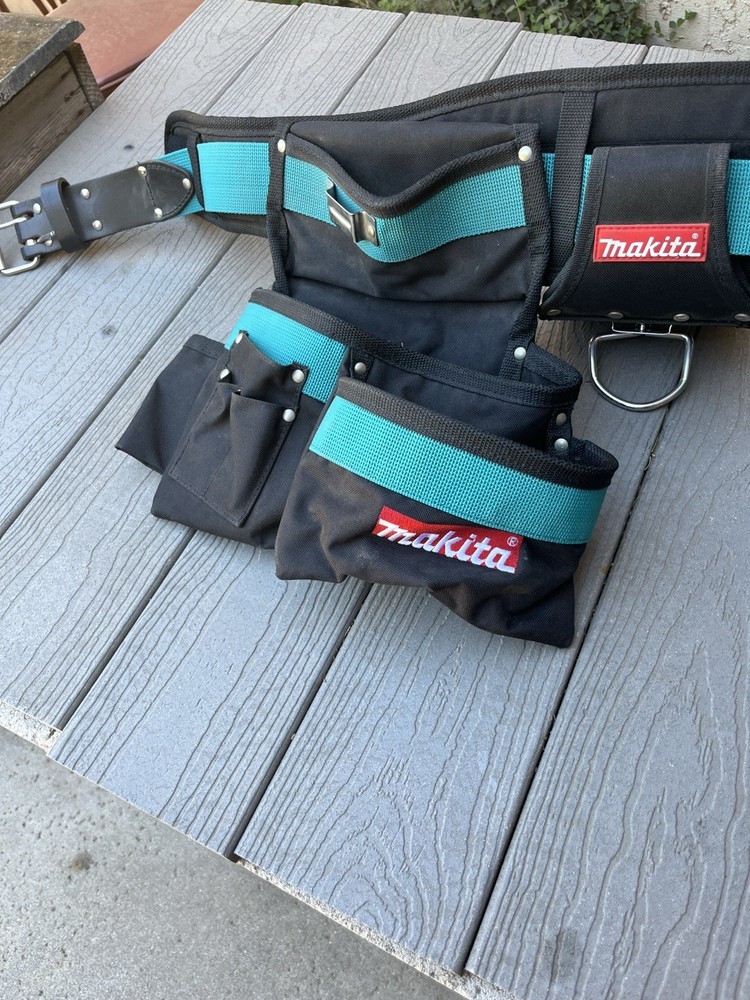 The Makita Ultimate Heavy Weight Tool Belt Set is a high-quality tool belt designed for professionals in the home and garden industry. Made of durable nylon material, this adjustable belt comes in a stylish multicolor design. With one tool belt included in the set, it provides ample storage space for all your tools while allowing for a comfortable and secure fit. Perfect for those who value both functionality and style in their tool storage solution. Overall length of belt is 54” preowned lightly used see photos