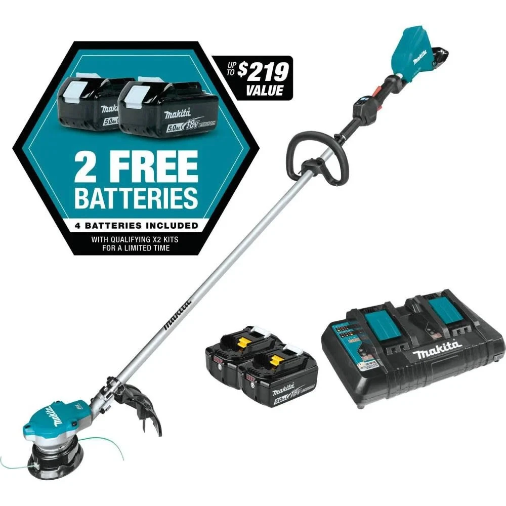 The Makita XRU15PT1 36V (18V X2) LXT® Brushless String Trimmer Kit is a powerful cordless tool designed for outdoor maintenance. With a brushless engine and 18V voltage, this string trimmer delivers reliable performance while being gentle on the environment. The kit includes 4 batteries with a 45-minute battery life, a battery charger, and bump protection for easy operation. Makita, a trusted brand in home and garden tools, ensures quality and durability in this convenient and efficient string trimmer.