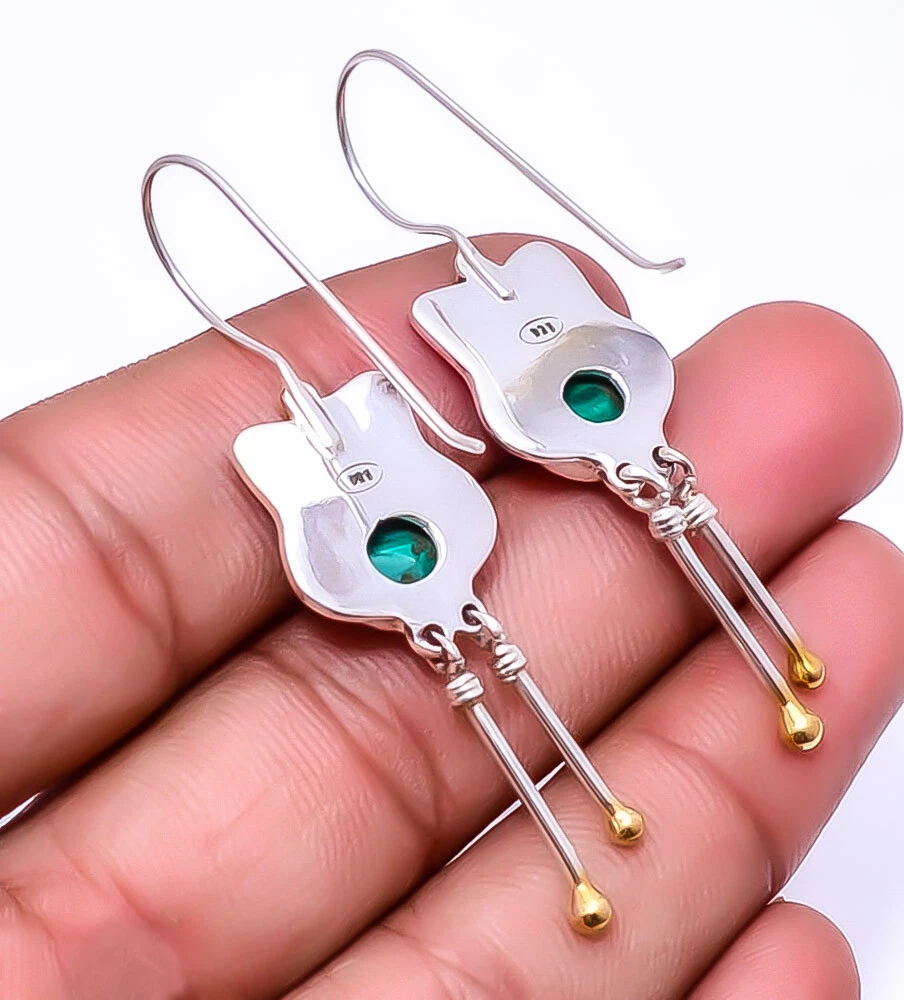 Theme Beauty Main Stone Depth As Seen in Picture Main Stone Length As Seen in Picture Main Stone Width As Seen in Picture Seller Warranty Yes Shape As Seen in Picture SKU E_9284_118_11 Main Stone Cut Type Cabochon Main Stone Size 8X8 Mm Antique Yes Handmade Yes Type Earring Style Drop/Dangle Metal Sterling Silver Metal Purity 925 Parts Per 1000 Base Metal Sterling Silver Total Carat Weight 35.5 Main Stone Malachite Main Stone Creation Natural Main Stone Shape Round Main Stone Color Green Main Stone Treatment Natural Material Gemstone, Stone Number of Gemstones 2 Item Length 2.34 Features Engraved, Nickel-Free, Handcrafted Ear Area Lobe Brand Unbranded Country/Region of Manufacture India Country of Origin United States Color As Seen in Picture Diamond Clarity Grade Not Applicable Number of Diamonds As Seen in Picture Item Diameter As Seen in Picture Gemstone Clarity Grade Opaque Diamond Color Grade Not Applicable Customized No Colored Diamond Intensity Not Applicable Certification 100% Genuine Guaranteed Setting Style Bezel Occasion Christmas, Birthday, Anniversary, Engagement, Wedding, Valen Shipping & Handling - Charge - 1st item-5.90 And Additional item-1.90 Handling Time - 1 Days . Delivery Time - 2 TO 3 DAYS. Shipping Service - USPS First Class Package 2 -3 Days. Returns - 1.We offer a 100% Money Back Guarantee minus shipping for 30 days after receiving the Item / item's. 2..The item must not be altered or damaged in any way shape or form. 3.Upon receiving these items your payment will be refunded. 4.Email us for return instructions before sending merchandise back. 5.Please allow up to 1 business day for all returns to receive credit. 6.Sizing does not affect the return policy. Payment - We accept PayPal for Payment ,should made with in 14 days once buying or winning done , in case of late information expected .