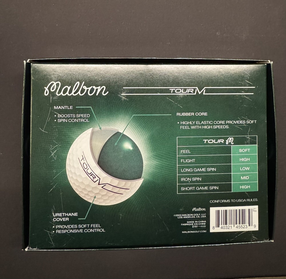 Malbon Tour M Golf Balls - 12X Dozen Box - NEW and UNUSED. Bottom of box is a bit scratched up but golf balls themselves are unused. US only, will ship ASAP.