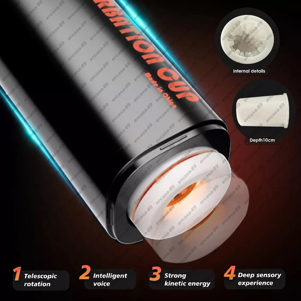 ❤ Second-Generation Automatic Rotating & Thrusting Masturbater for Men Discover the upgraded version of our popular male masturbater — now featuring powerful rotating and telescopic motion for the most realistic experience. With a 5 cm thrusting length and up to 300 automatic strokes per minute, this hands-free toy offers lifelike sensations that take solo play to the next level. ❤ Key Features Automatic Rotating & Thrusting Design – The 720° rotating sleeve and telescopic motion work together to simulate natural movement, providing an intense, realistic experience. One-Click Orgasm Control – Instantly activate high-speed vibration and pulsation with a single button for quick, powerful satisfaction. Hands-Free Operation – Equipped with a sturdy suction base for stable, hands-free use. Perfect for effortless pleasure sessions anywhere you like. Dual-Sleeve Design – Includes two soft, body-safe textured sleeves that mimic real sensations. Easily swap and clean them for convenience and hygiene. Immersive Audio Experience – Comes with a built-in audio feature that plays sensual sounds through the included headphones for a fully immersive encounter. ❤ Specifications Functions: Automatic rotation + telescopic thrusting Thrusting Length: 5 cm (~2 inches) Speed: Up to 300 strokes per minute Material: Soft, body-safe TPE sleeve + durable ABS case Charging: USB rechargeable Color: Black Waterproof: Inner sleeve only (remove for cleaning) Noise Level: ≤ 50 dB ❤ Package Includes 1 × Automatic Rotating & Telescopic Male Masturbater Cup 1 × USB Charging Cable 1 × AV Voice Headphone 1 × Instruction Manual ❤ Important Note Only the inner sleeve is waterproof . Please remove it before cleaning and avoid letting water enter the motorized section to prevent damage. Shipped in plain, discreet packaging with confidential billing to protect your privacy. Perfect for men seeking realistic sensations, stamina training, and hands-free automatic pleasure.