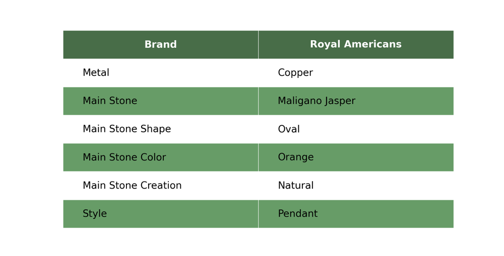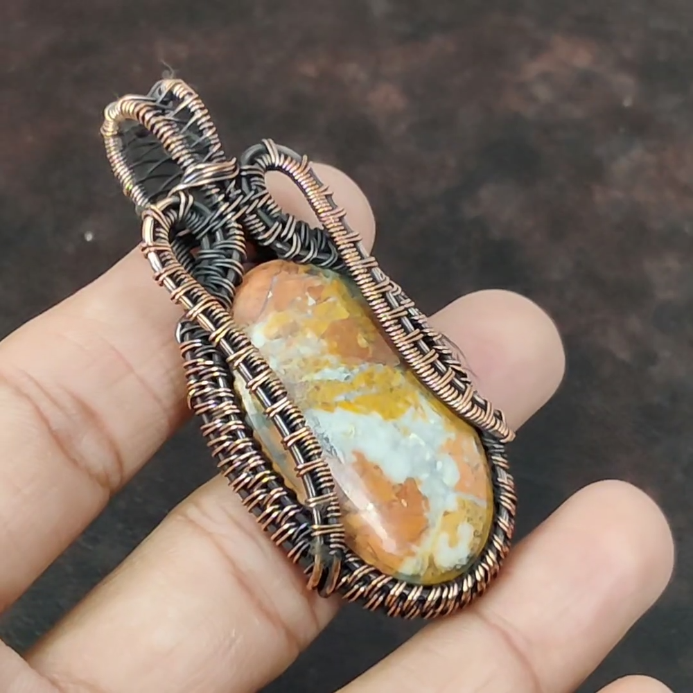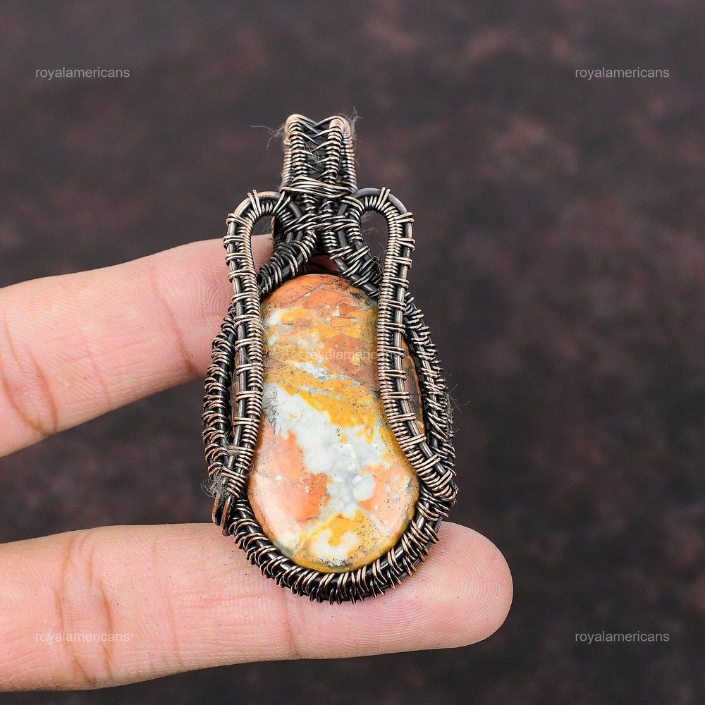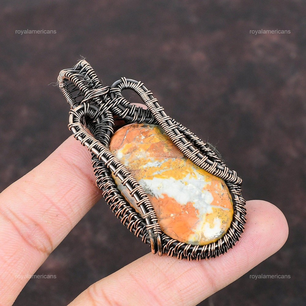 Note : Due to the natural formation of this gemstone. Slight variation in design and color are to be expected. Welcome to Royalamericans Mothers day Sale Maligano Jasper Stone Sister Handmade Pendant Jewelry Copper Handmade Pendant, Wire Wrapped Pendant, Wire Wrapped Jewelry, Copper Pendant, Copper Wire Pendant, Wrapped Jewelry, Wire Wrap Pendant, Wire Wrap Jewelry SKU : UWP-417 Gemstone : Maligano Jasper Stone Shape : Oval Metal Purity : Unknown Copper Length : Millimeters Width : Millimeters Copper has been used for jewelry making for thousands of years, dating back to ancient civilizations such as the Egyptians, Romans, and Aztecs. Copper was valued for its beauty, versatility, and durability, and was often used to make everything from jewelry and coins to cookware and tools. In addition to its historical significance, copper jewelry also offers several benefits. Copper is a natural conductor of heat and electricity, which makes it ideal for energy healing and therapeutic purposes. Wearing copper jewelry is believed to have various health benefits, such as improving circulation, reducing inflammation, and boosting the immune system. Some people also believe that copper jewelry has the ability to balance energy and improve mood. For Mother's Day Gift For Father's Day Gift For Promise For Valentine's Day For Halloween Party For Christmas Day Gift For New Year Party For Mom For Her If you can't find the information you need or need some advice for your design? Feel free to contact us. We are fast to reply :) All our work is made by hand with Love and Care in our workshop Thank you so much for visiting and hope you enjoy shopping with us Royalamericans is committed to delivering the best quality sterling silver jewelry to customers. As a handmade jewelry manufacturer, we offer an extensive selection of copper gemstone jewelry that showcases the brilliance of our craftsmanship. We are an experienced handmade jewelry supplier with expertise in embellishing gemstones to suit every style. We offer you the liberty to create your jewelry ensemble with sparkling, earthy, and pure gemstones. Our Talented artisans masterfully handcraft each piece of jewelry you see here. Our pieces are made with genuine gemstones.