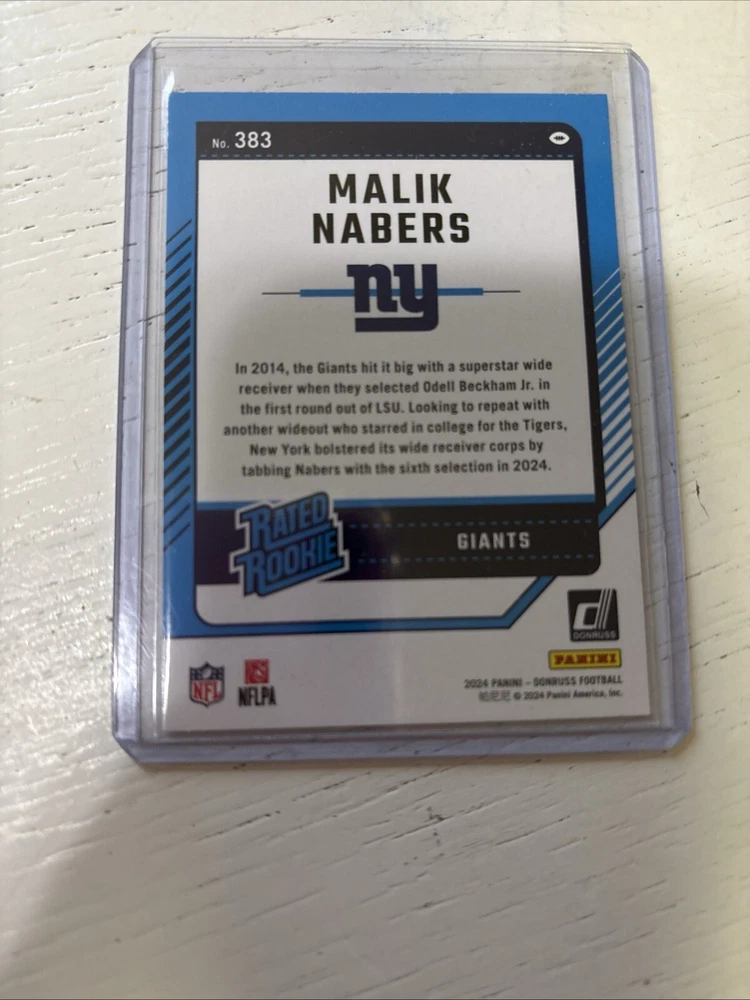 Get your hands on the Malik Nabers Rated Rookie Card Lot, a must-have for any football fan! This lot includes three cards featuring the talented wide receiver in his Optic Halo and Donruss Rated Rookie designs. All cards are manufactured by Panini and belong to the 2024 season. The cards are perfect for collectors and enthusiasts alike, with each card showcasing the National Football League (NFL) and the sport of football. The features of the cards include the rookie status of Malik Nabers, making this lot a great addition to any sports trading card collection. Don't miss out on this limited edition lot!